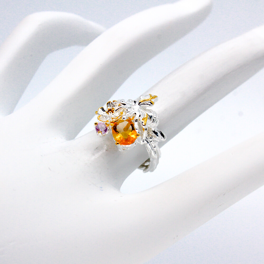 как выглядит Not Enhanced Natural Citrine Silver Ring 925 Sterling / RVS78 фото