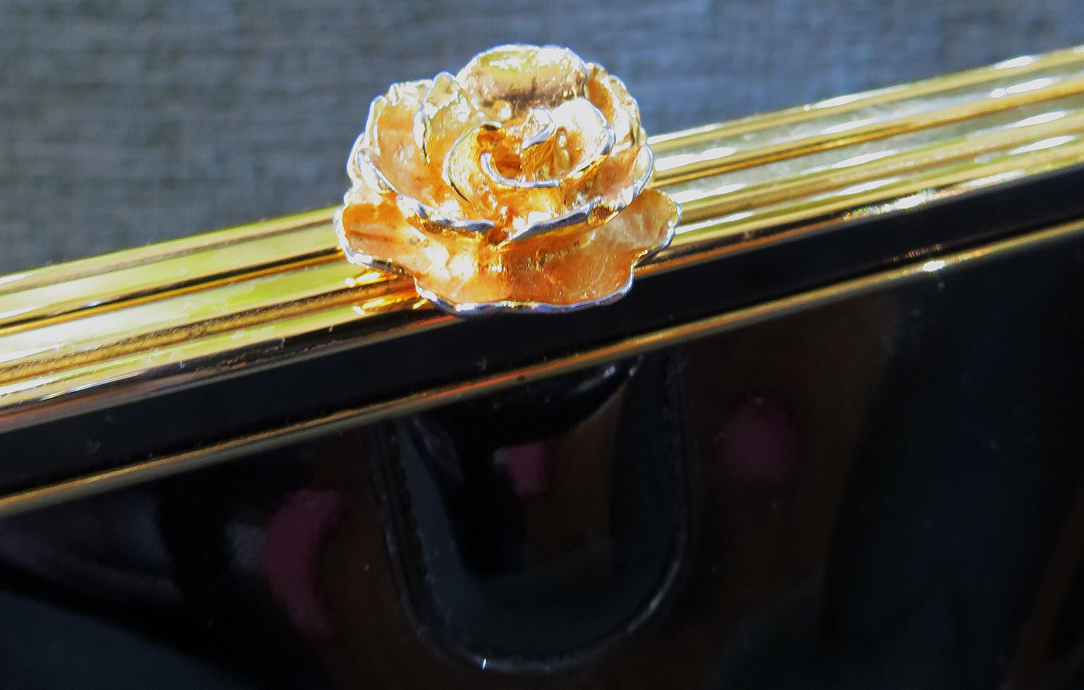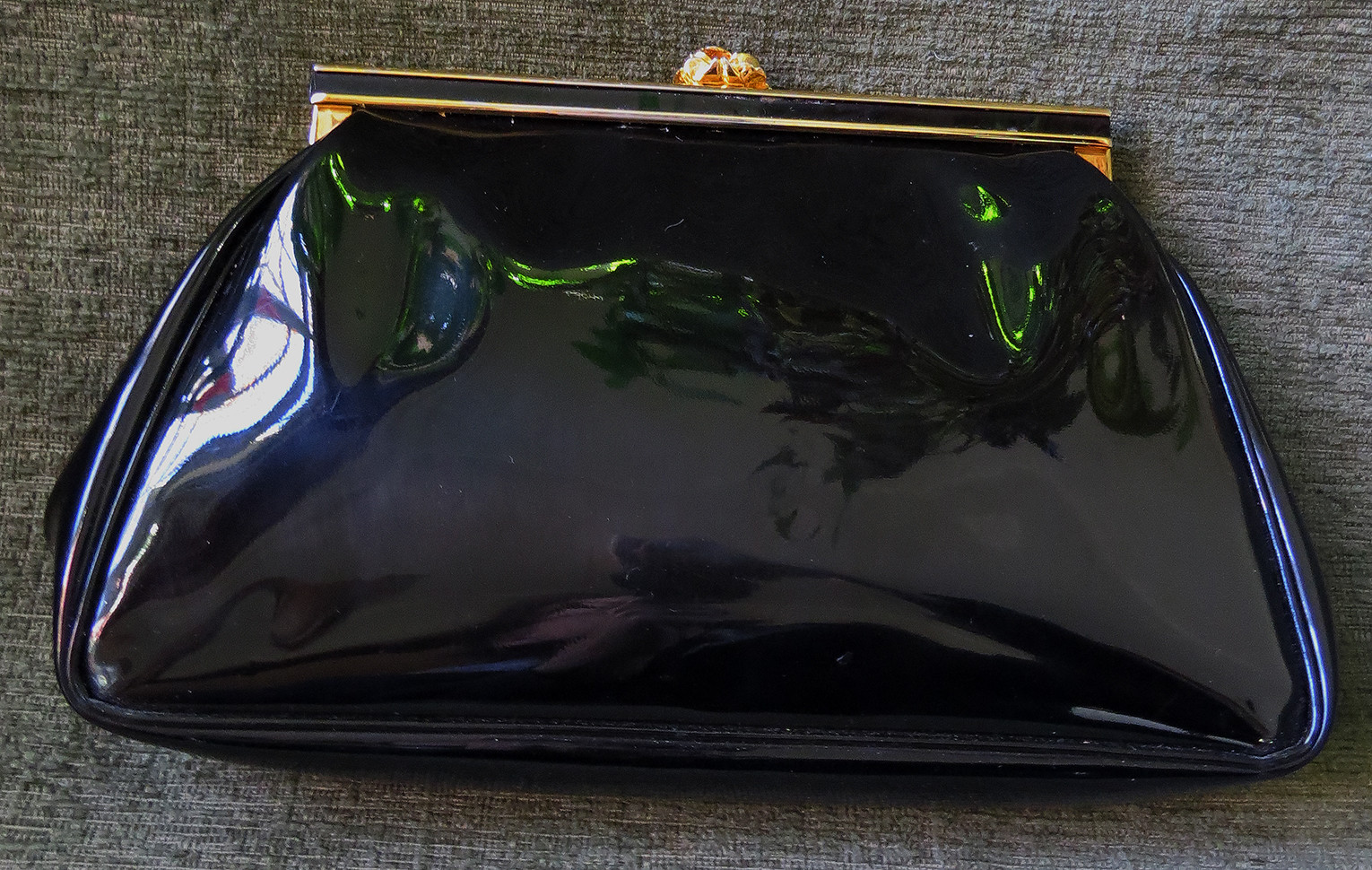 как выглядит Vintage BIENEN DAVIS Clutch Bag Black Patent Leather Purse Gold Rose Clasp 60