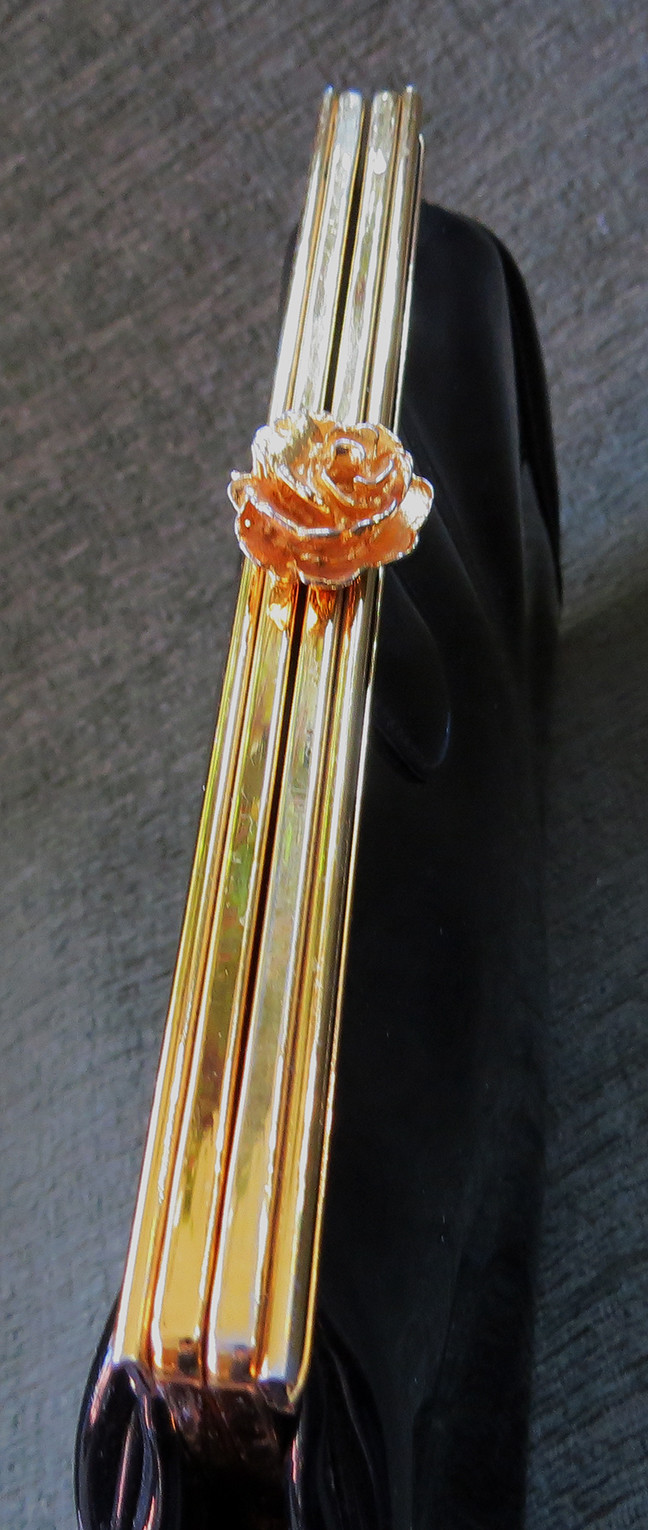 Vintage BIENEN DAVIS Clutch Bag Black Patent Leather Purse Gold Rose Clasp 60's