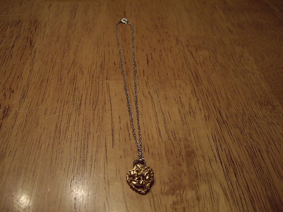 EUC Girls Necklace Goldtone Rose In a Heart on a 15 Silvertone Chain Ring Clas