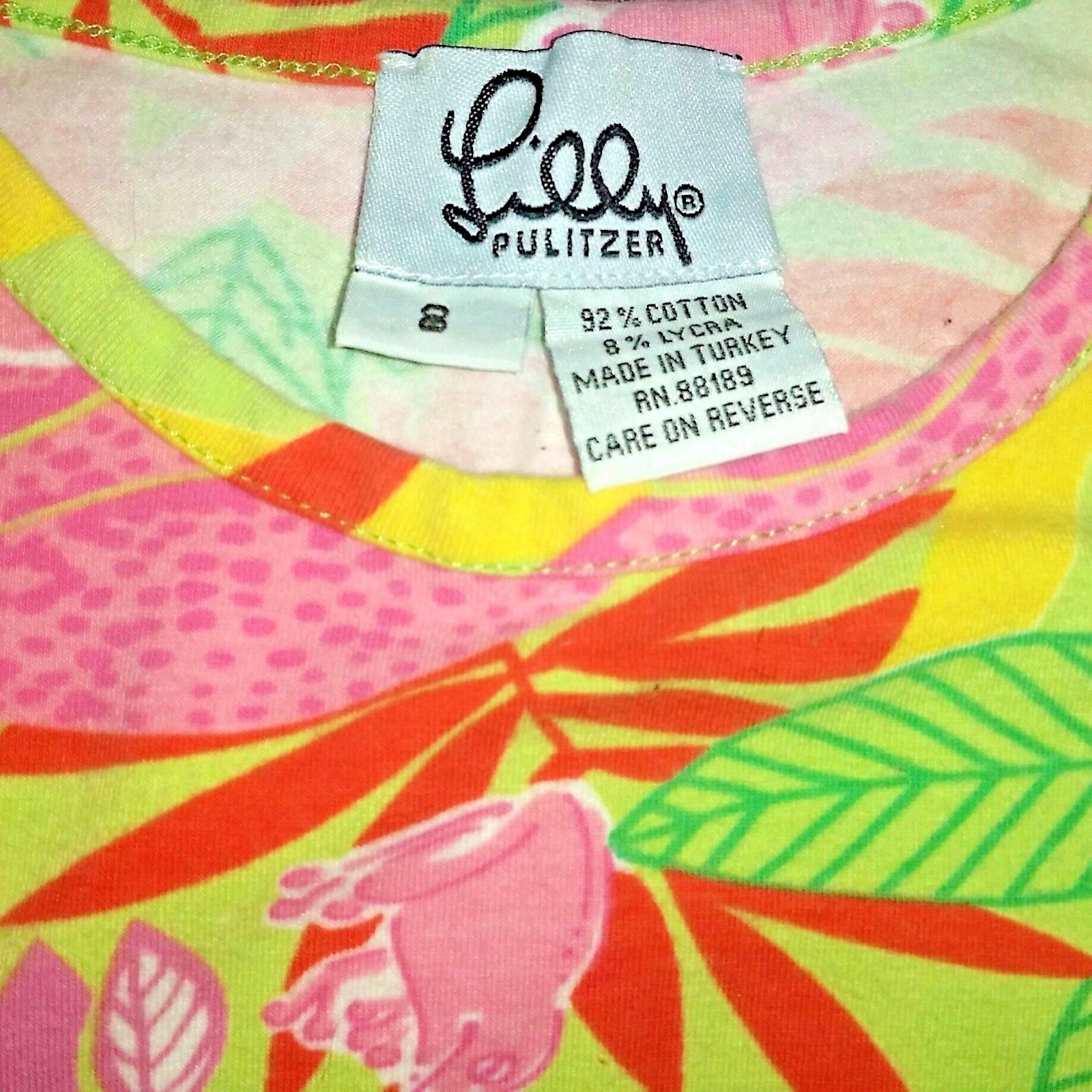 как выглядит Lily Pullitzer Leaves Frogs Nature Print Stretch Dress Girls 8 Pink Orange Green фото