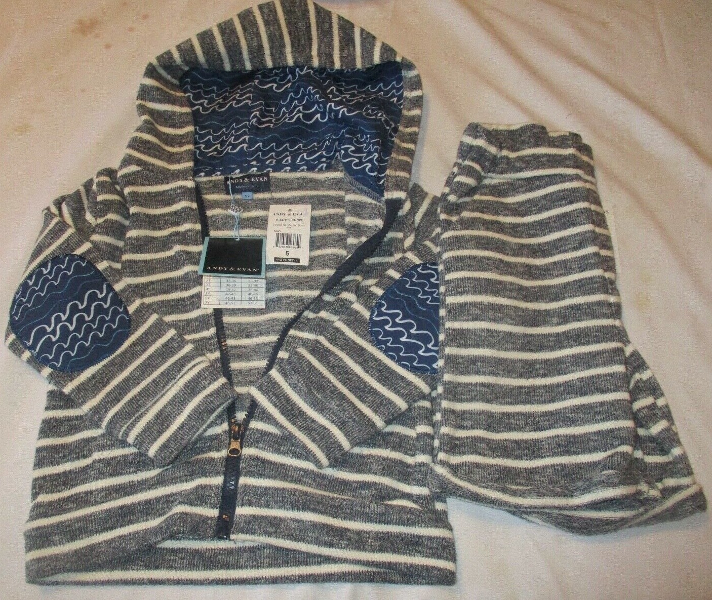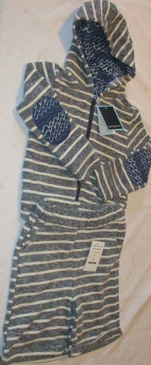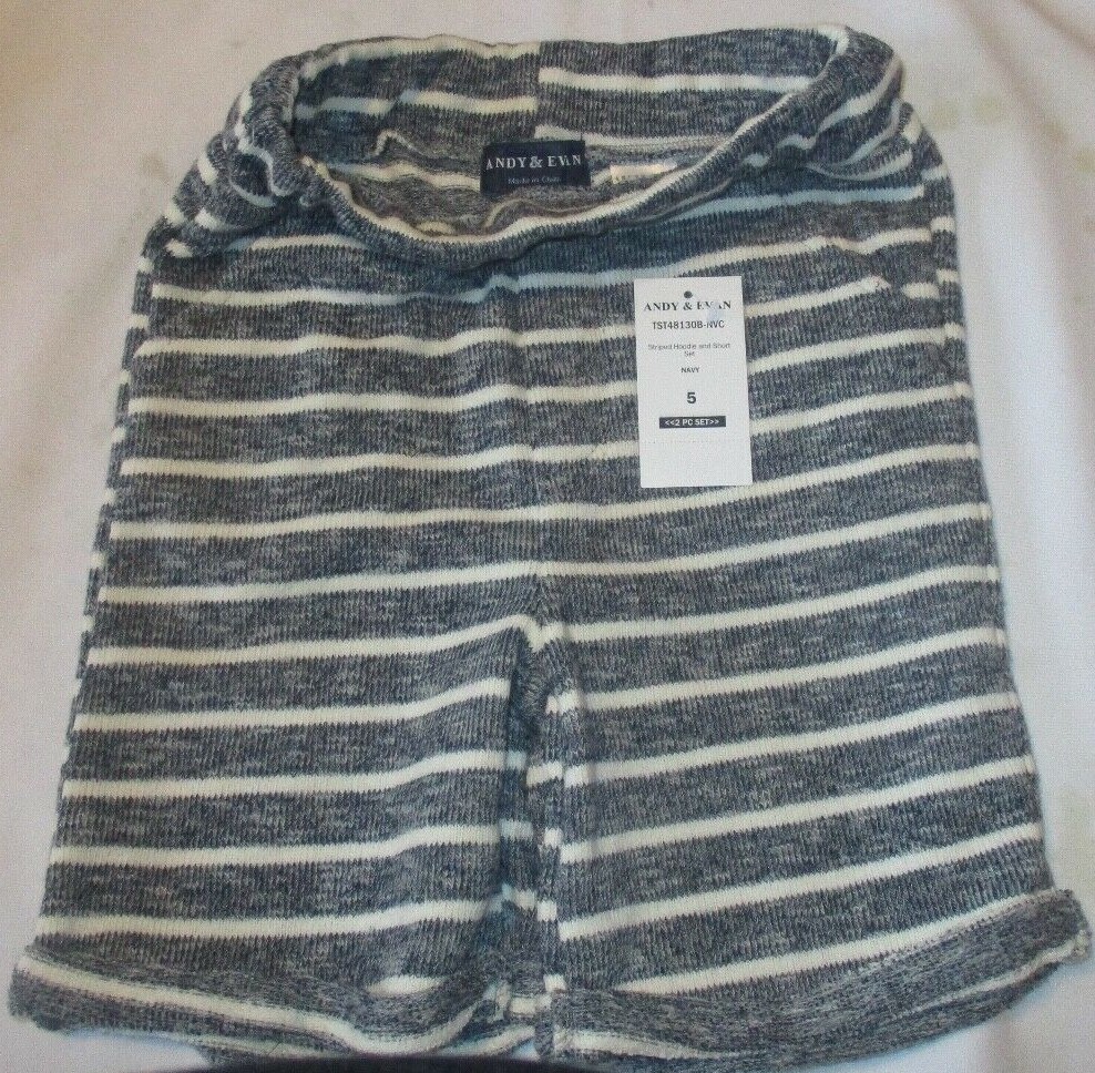 BOY'S ANDY EVAN TST48130B-NVC STRIPED HOODIE AND SHORT SET NAVY/WHITE SIZE 5Y