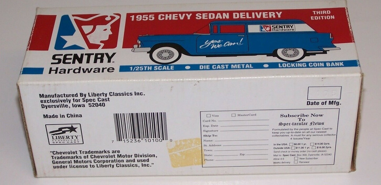 • Sentry Hardware 1955 Chevy Sedan Delivery Car 1/25th Scale Die Cast Metal Bank