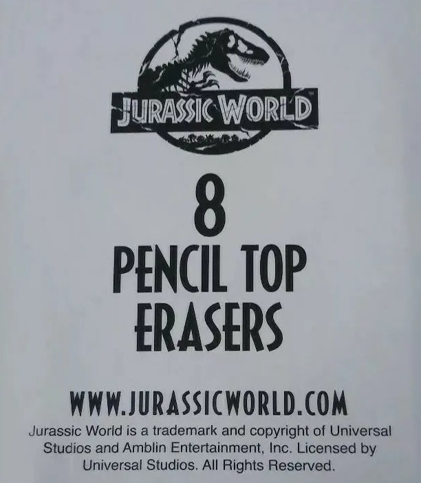 Jurassic World: Fallen Kingdom 2 ct. 8 Pencil Top Erasers each