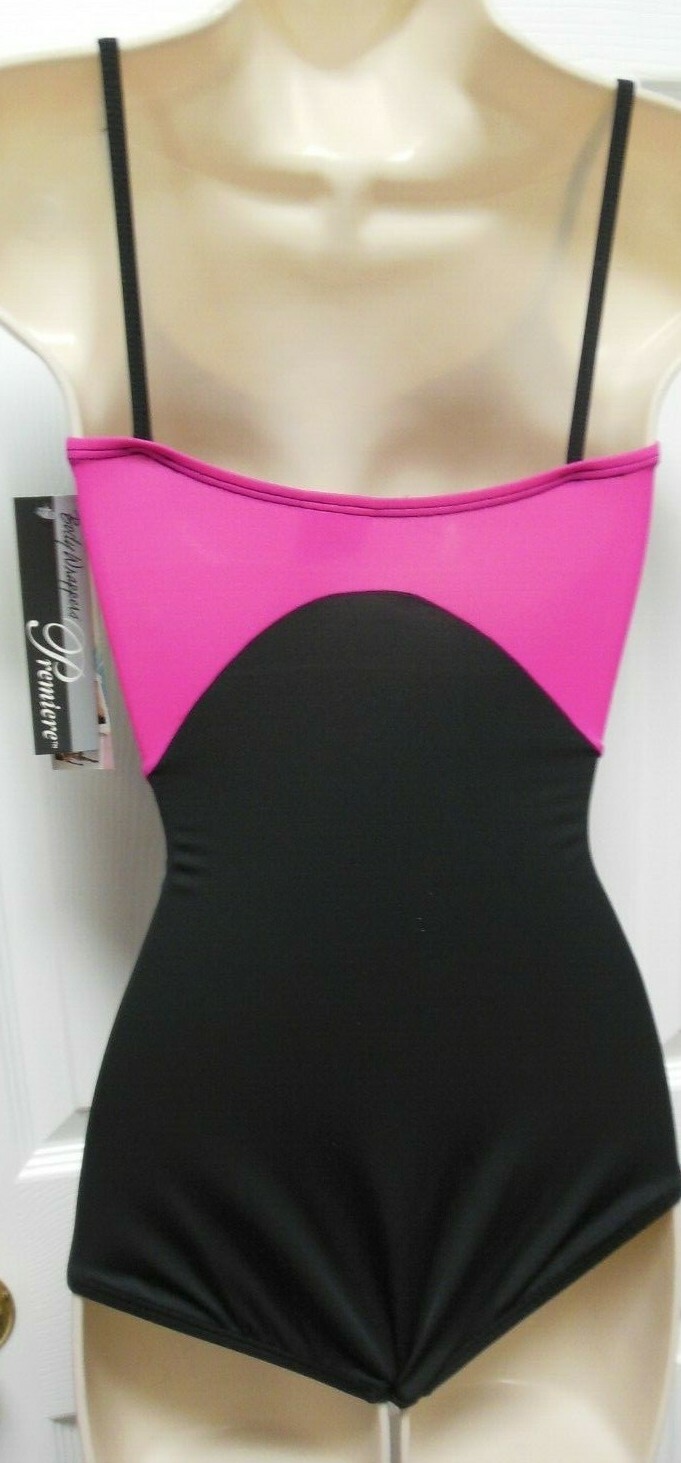 Black Camisole Leotard Rasberry stripe Ladies sizes P1004 pinchfront Tiler Peck