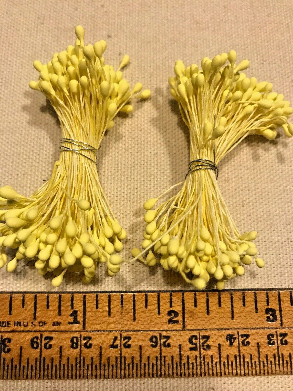 Vintage Millinery Flower Stamen 2 bunch Lot Yellow tips on both ends Y254a