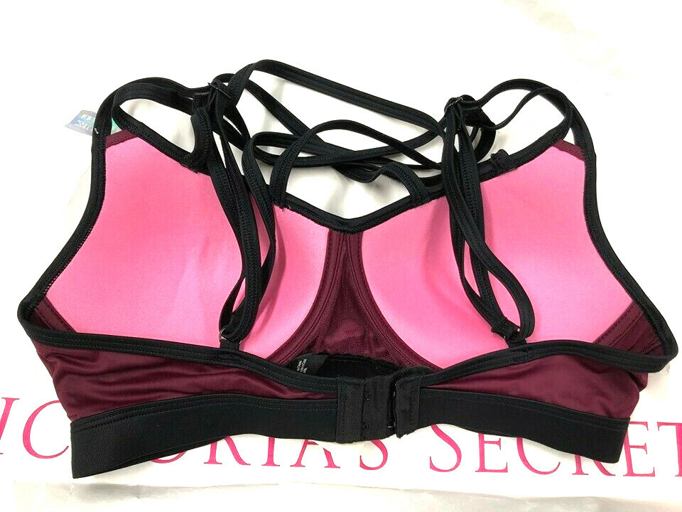как выглядит Victorias Secret Pink Ultimate Strappy Push-up Sports Bra Maroon NWT фото