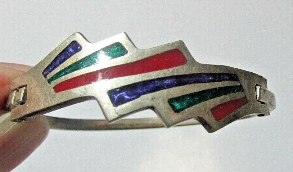как выглядит BEAUTIFUL AL PACA MEXICO TODDLER CHILDS BRACELET COLORFUL HINGED MARKED фото