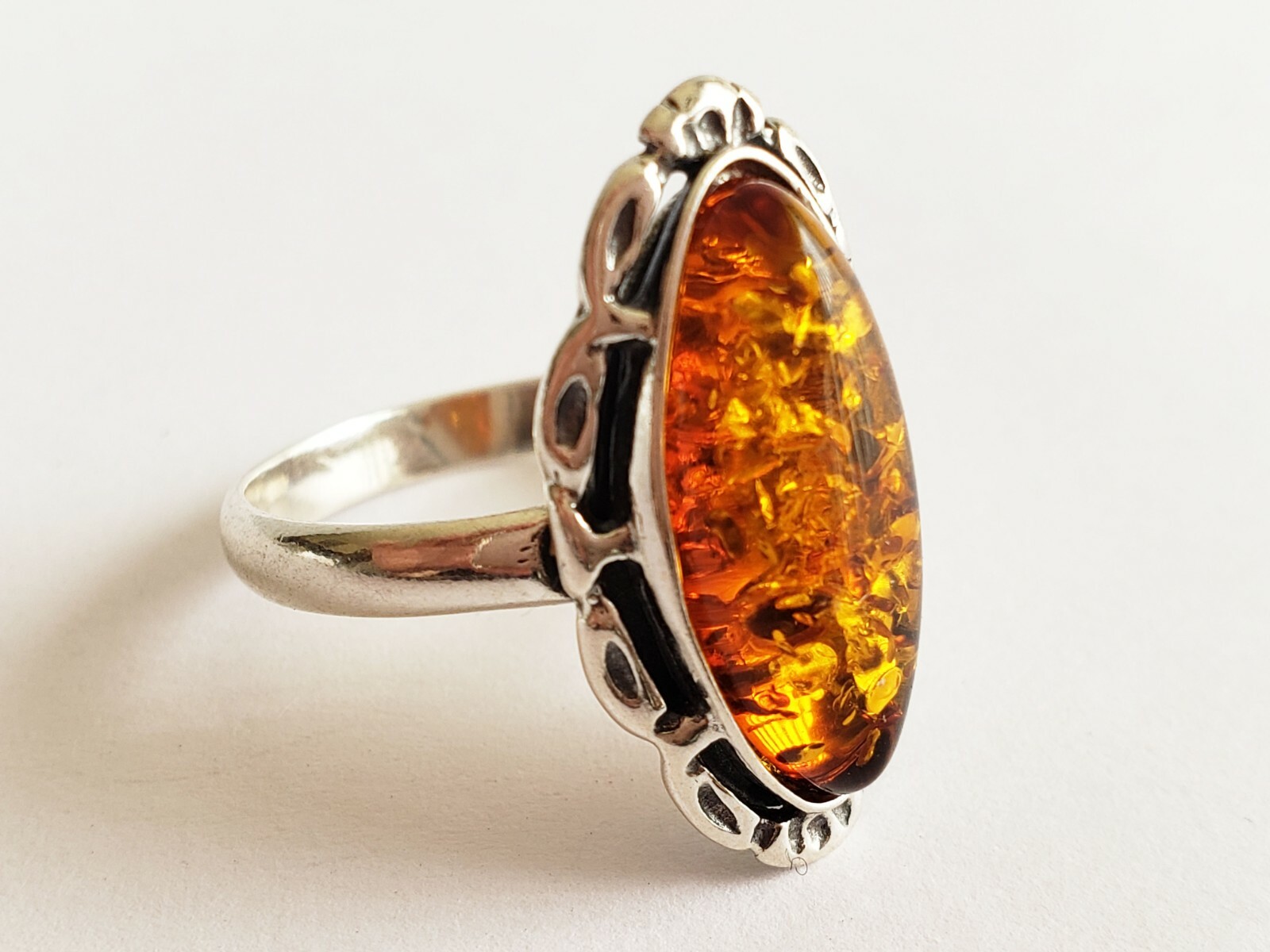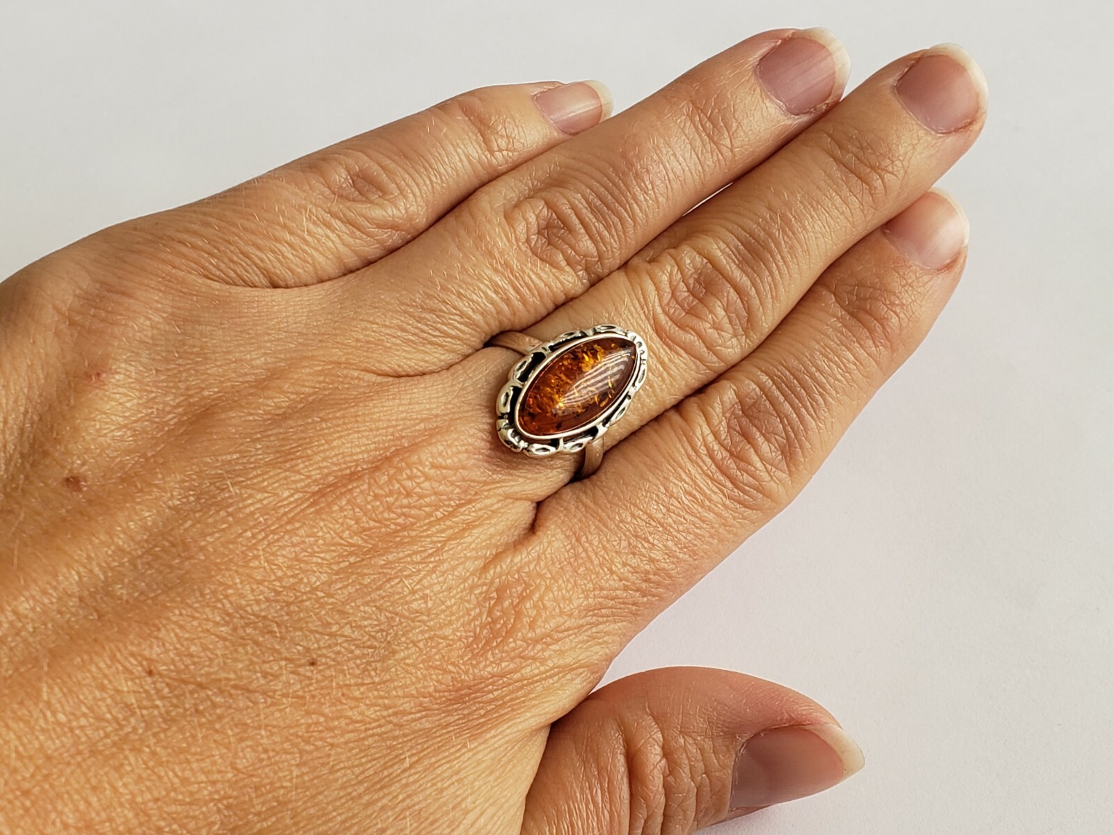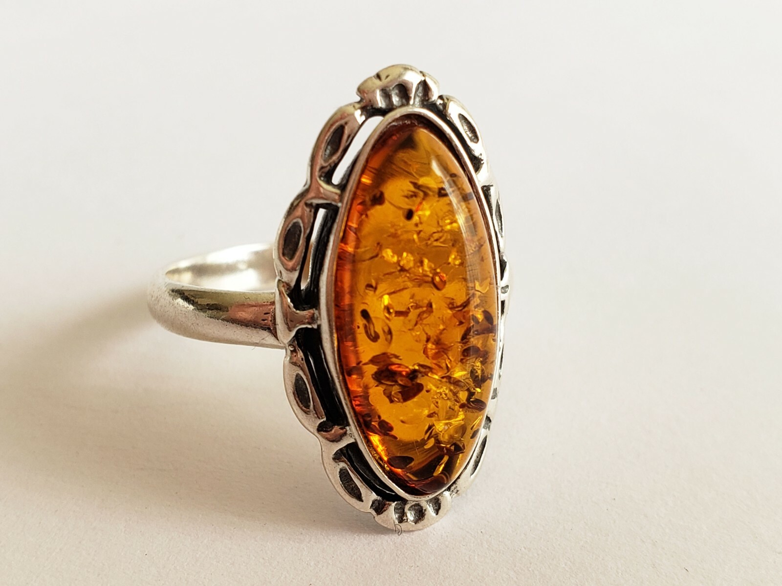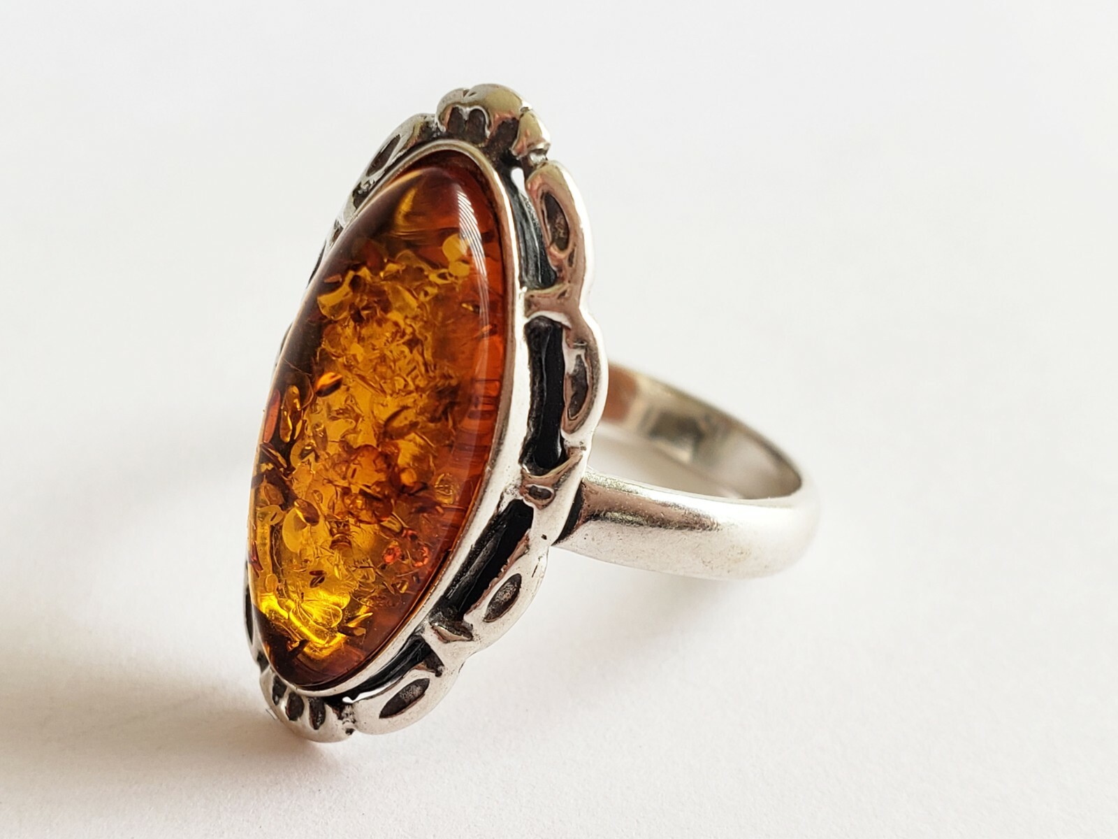 как выглядит BALTIC AMBER 100 925 STERLING SILVER RING GORGEOUS NATURAL Amber 3.4gr SZ 8.5 фото
