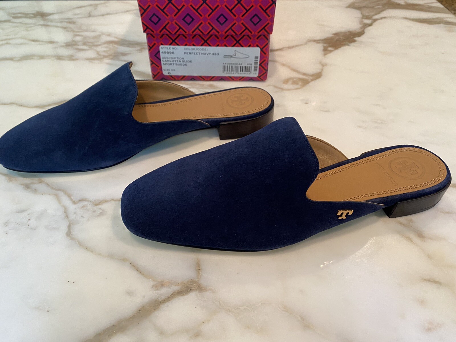 Tory Burch Carlotta Suede Slide Mules Navy Flats