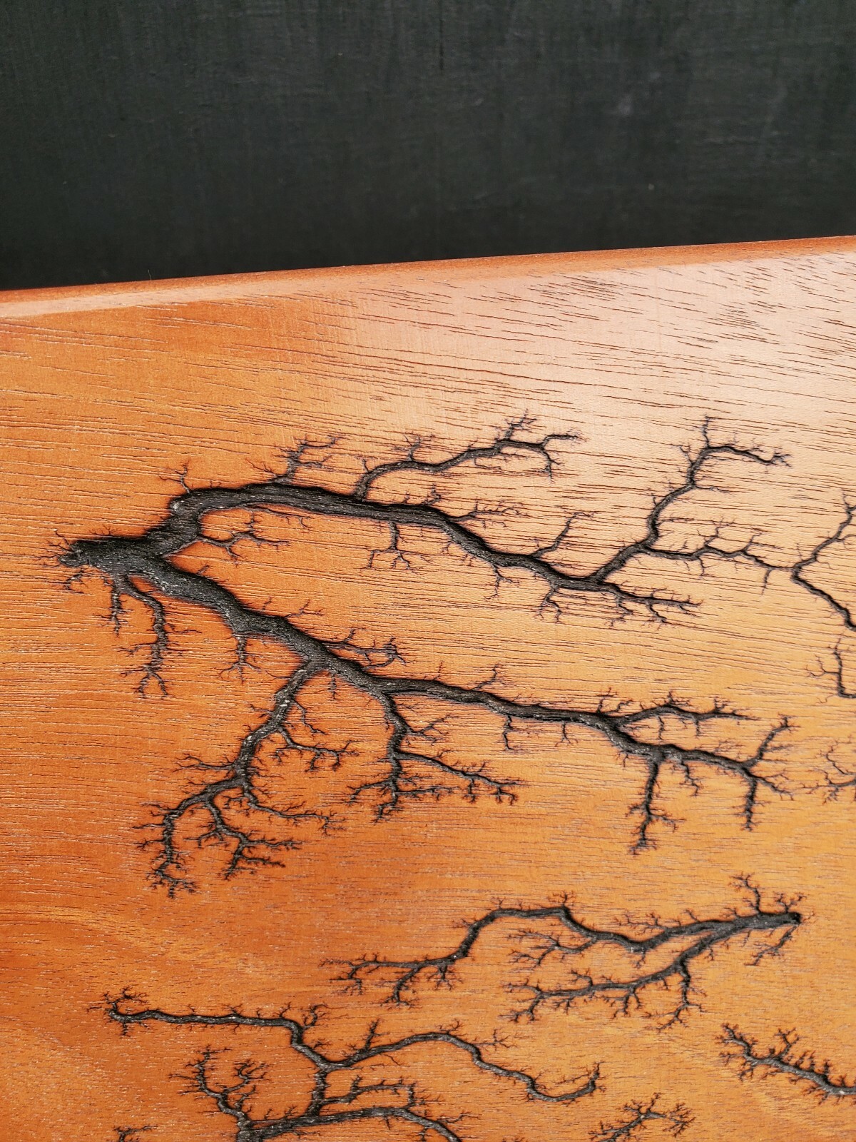 как выглядит Dragonfire - High voltage Fractal wood burning. Wall art on Mohogany wood. фото