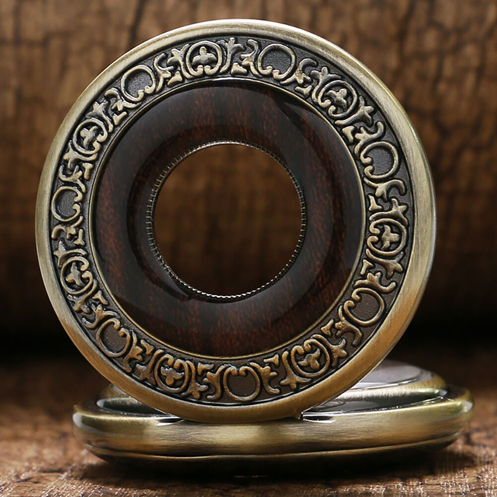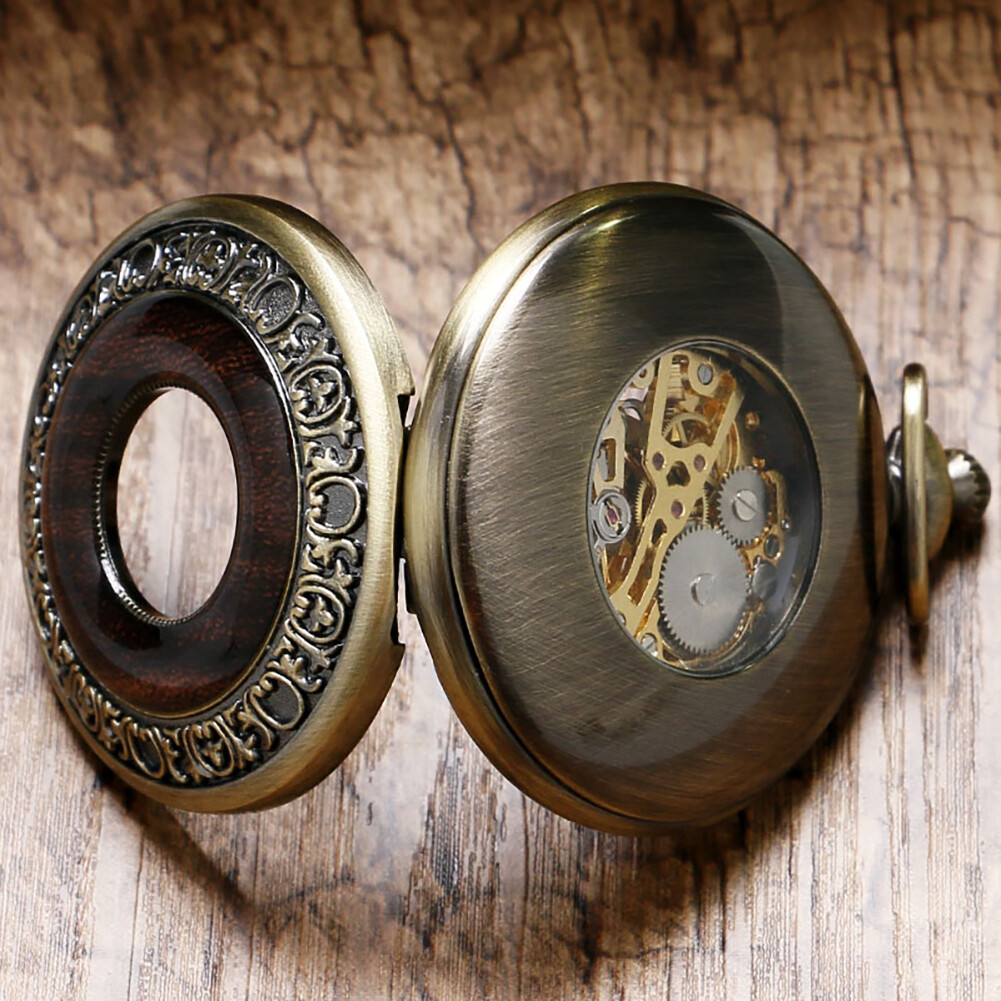 Bronze Vintage Half Hunter Unisex Mechanical Hand Winding Skeleton Pocket Watch