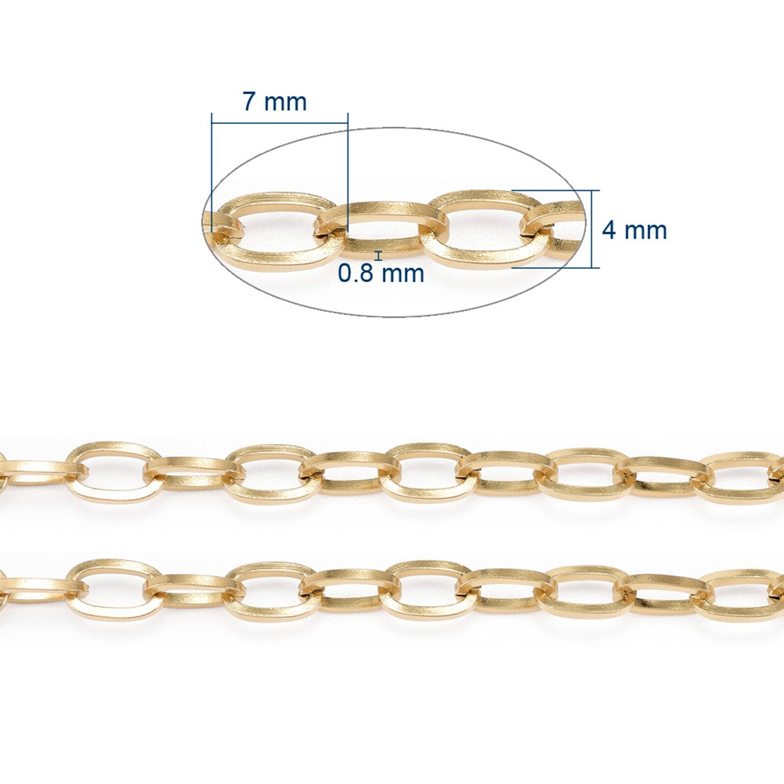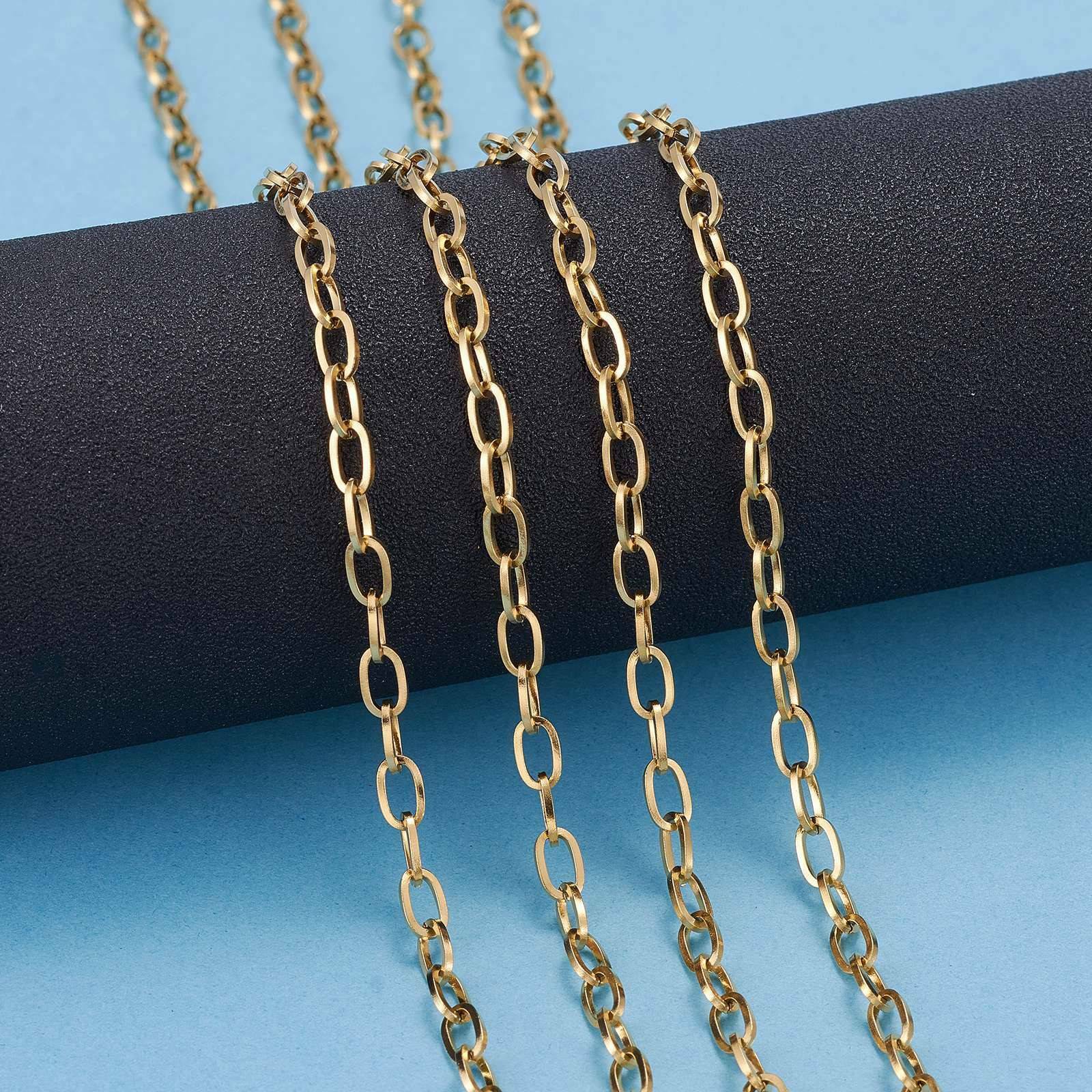 10m/roll Golden 304 Stainless Steel Cable Unwelded Chains with Spool 7x4x0.8mm