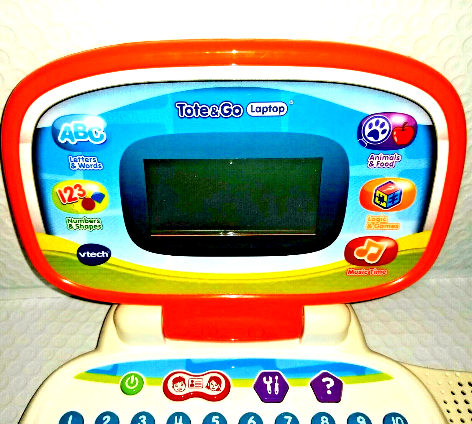 Vtech TOTE 'N GO LAPTOP White Orange 5 Modes of Play Music Animated Screen