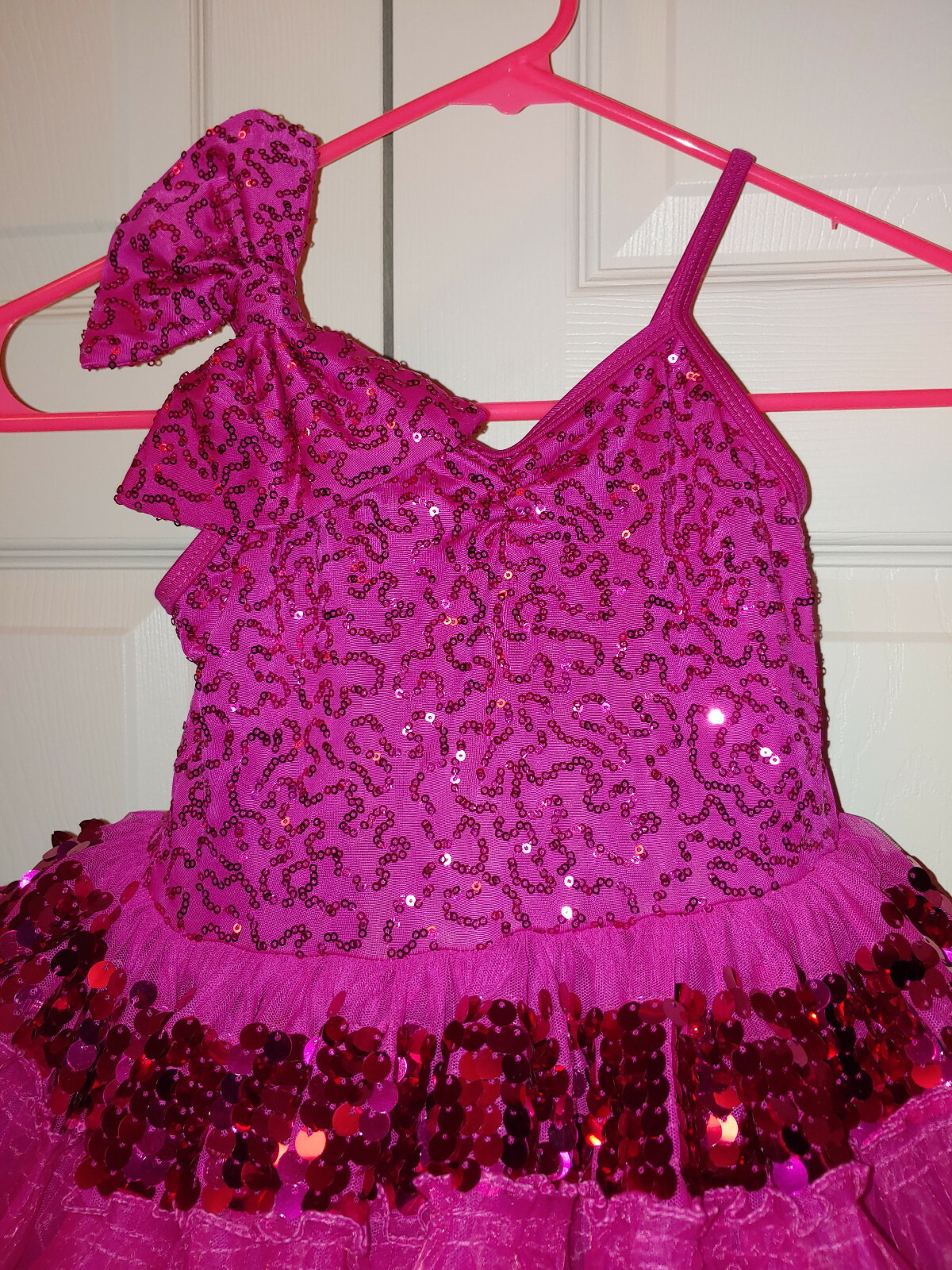 как выглядит Girl Weissman Hot Pink Bow Sequin Tiered Tutu Dance Costume 7610 Size IC 7/8 фото