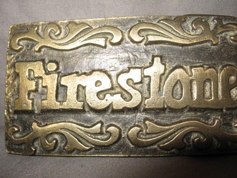 Solid Brass Baron's Firestone Belt Buckle 3 1/4 Length VGC