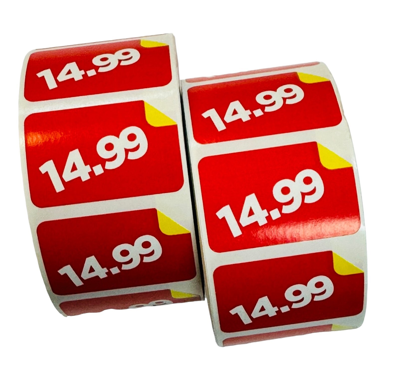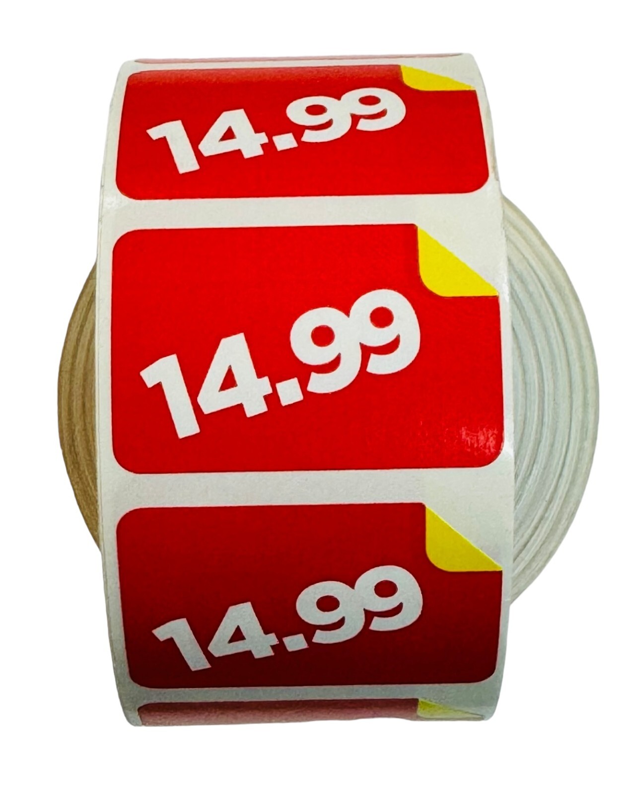 1000 1.5x1 14.99 Product Price Point Red Yellow Labels Stickers 2 Rolls