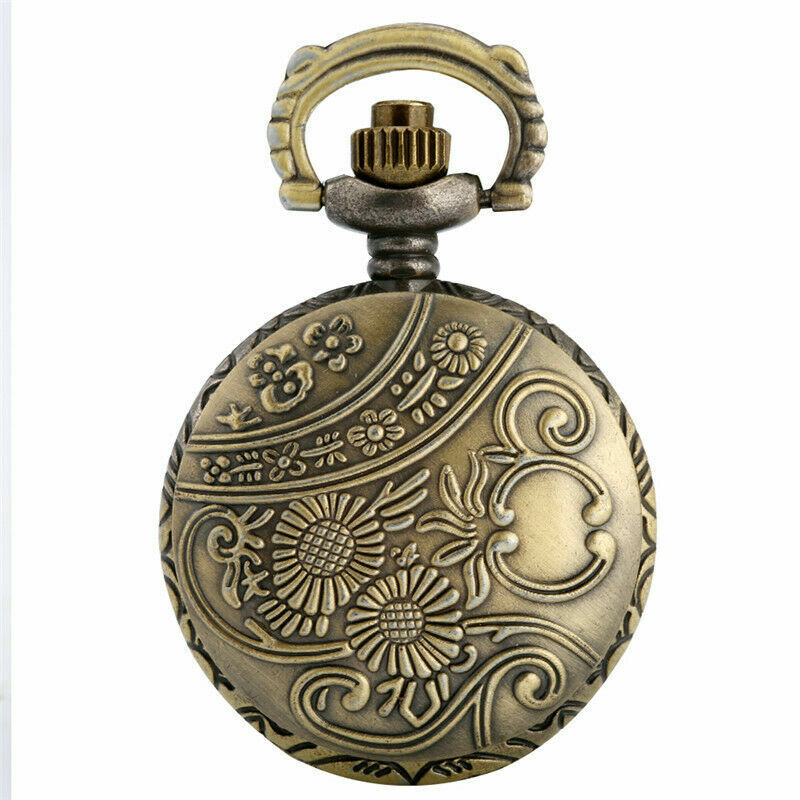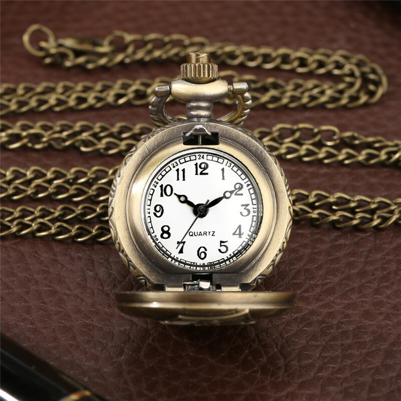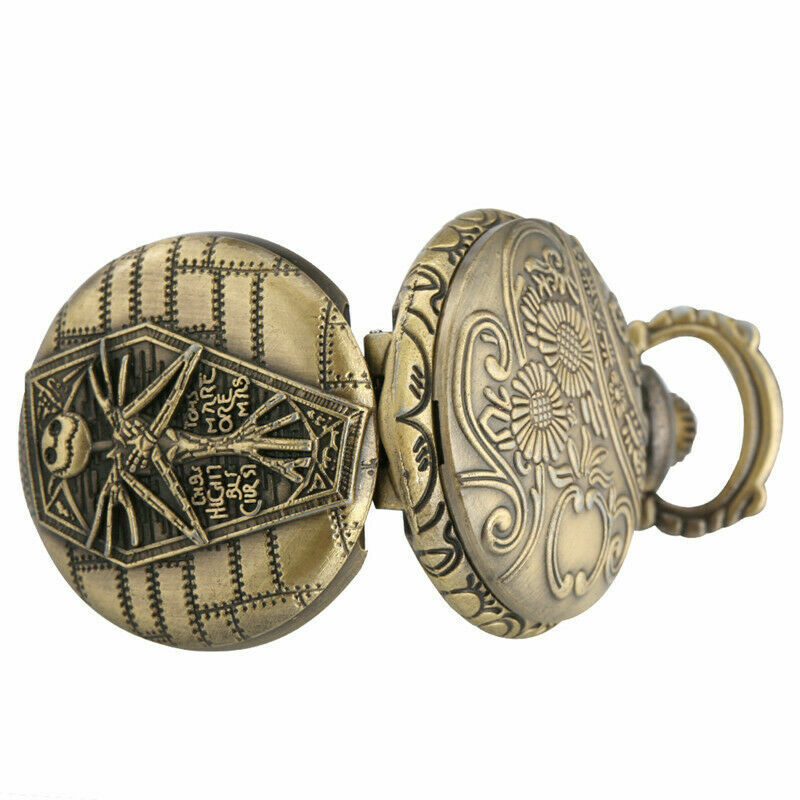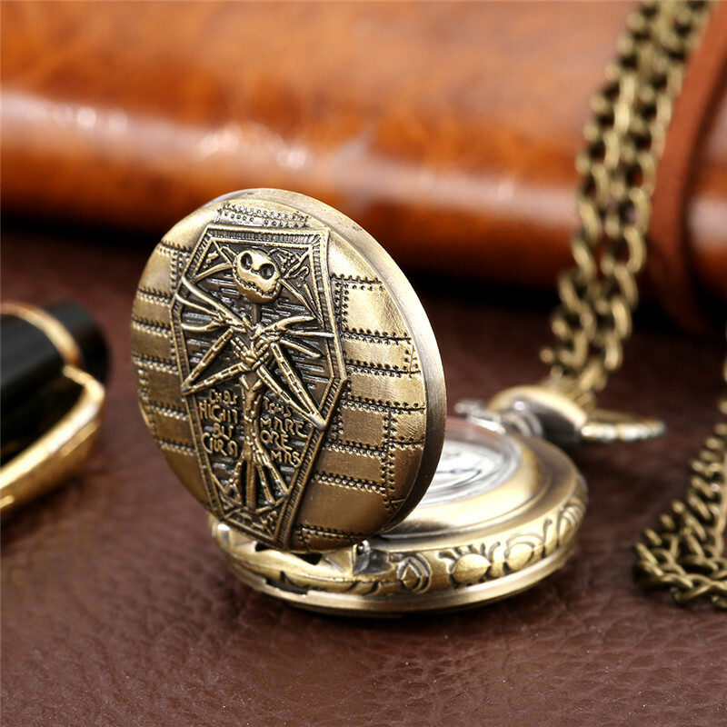 Retro Bronze Christmas Skeleton Mummy Unisex Quartz Pocket Watch Necklace Chain