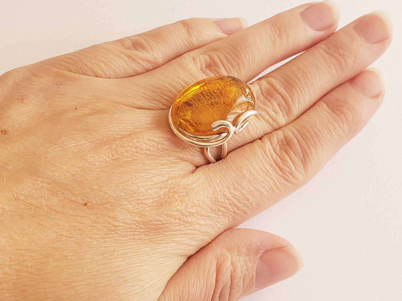 BALTIC AMBER 925 STERLING SILVER Ring Genuine HONEY AMBER RING 9.9gr SIZE 7.5