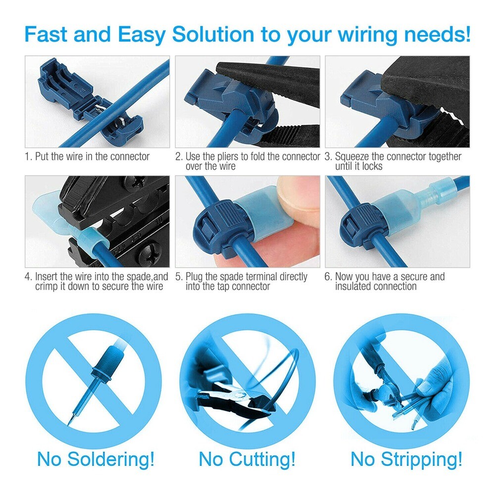 60Pcs Insulated 22-10 AWG T-Taps Quick Splice Wire Terminal Connectors Kit New