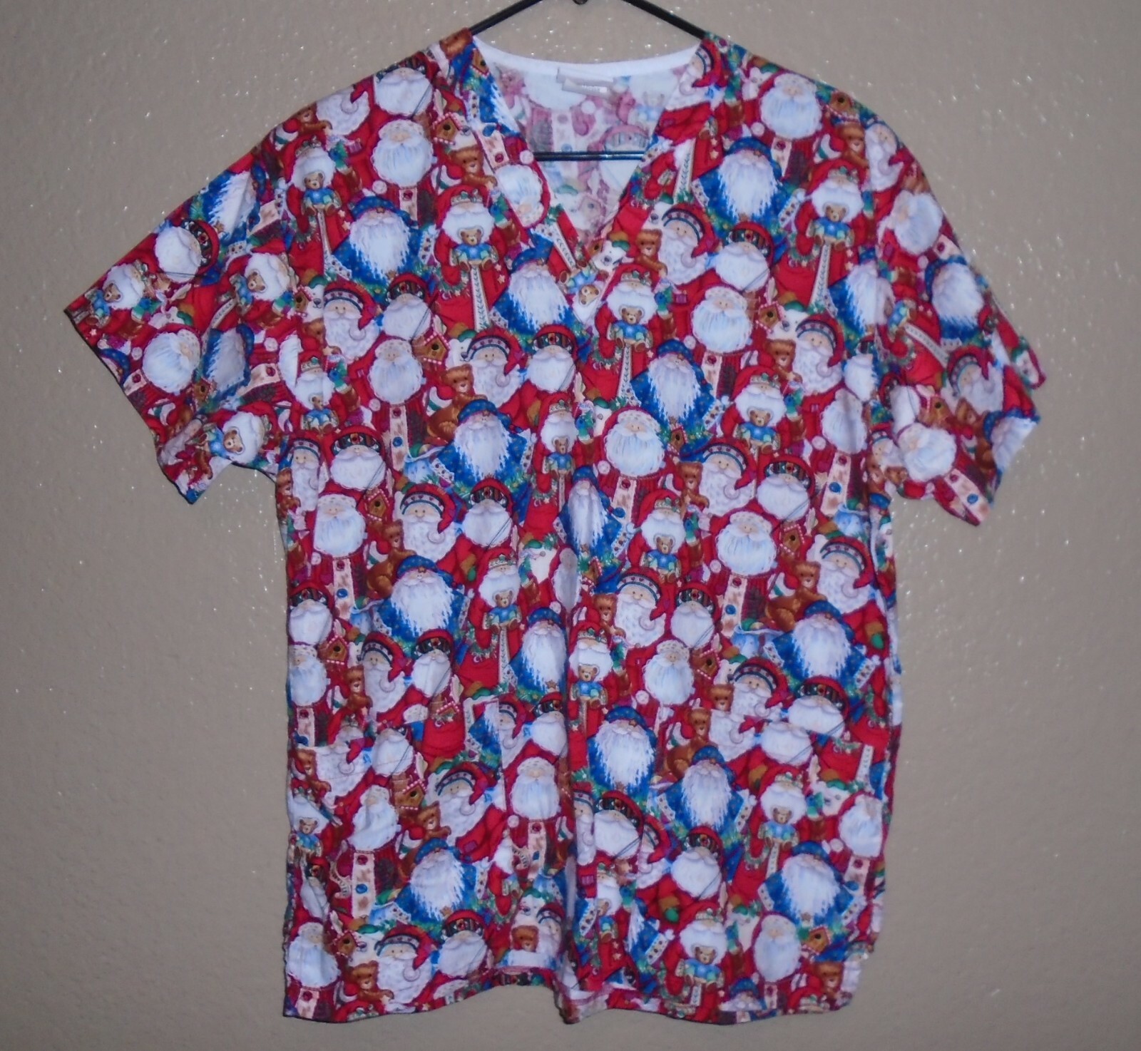 как выглядит PEACHES Scrubs Scrub Top Santa Teddy Bears CHRISTMAS HOLIDAY SMALL COTTON EUC фото