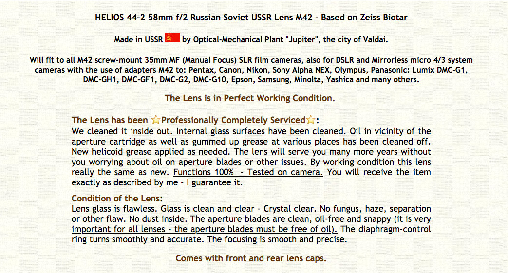 как выглядит SERVICED 1980 HELIOS 44-2 58mm f/2 Russian Made in USSR Lens Screw Mount M42 фото