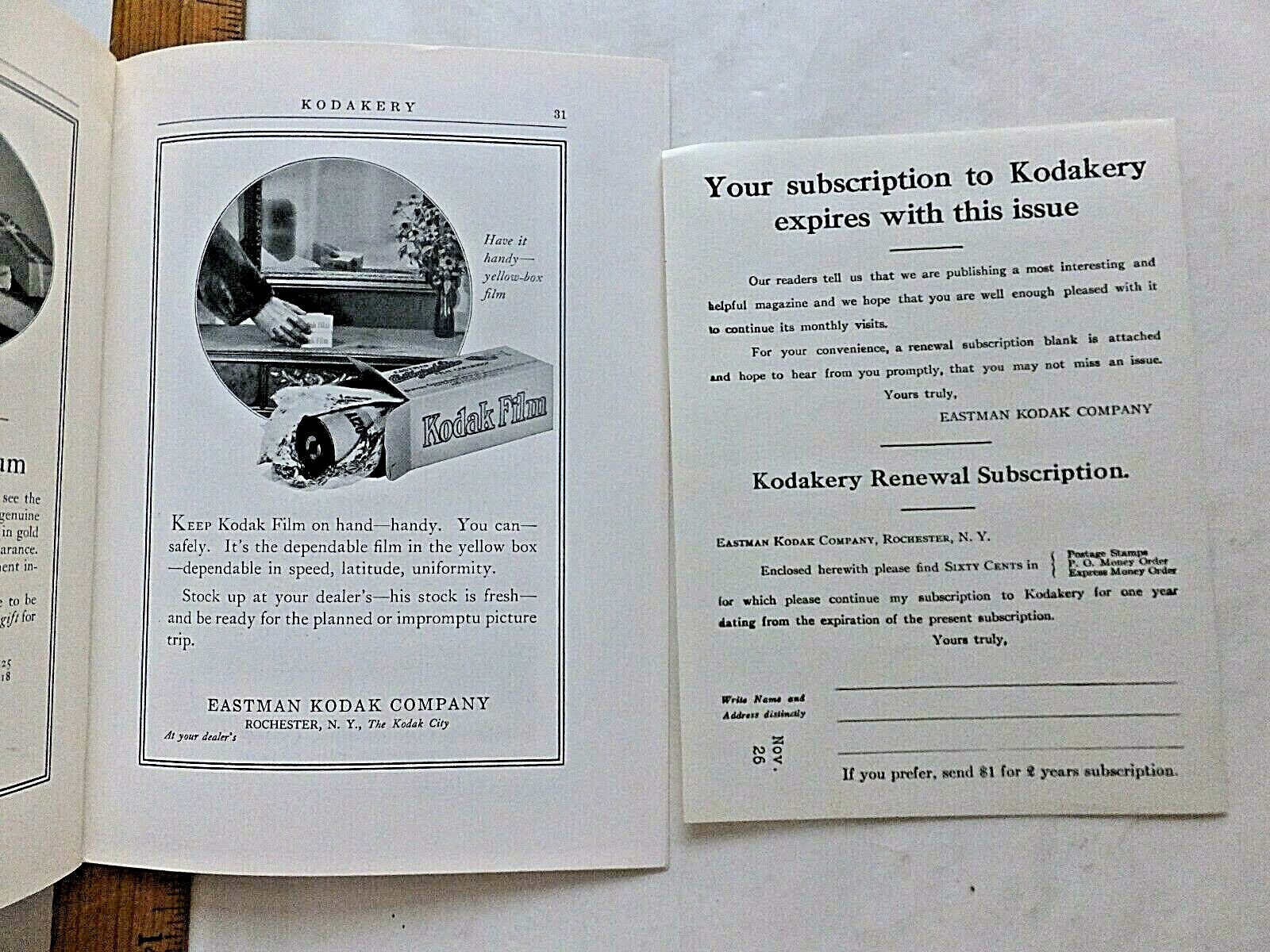 • 1926 Kodakery Magazine for Amateur Photographers. Expression Photography, Ads