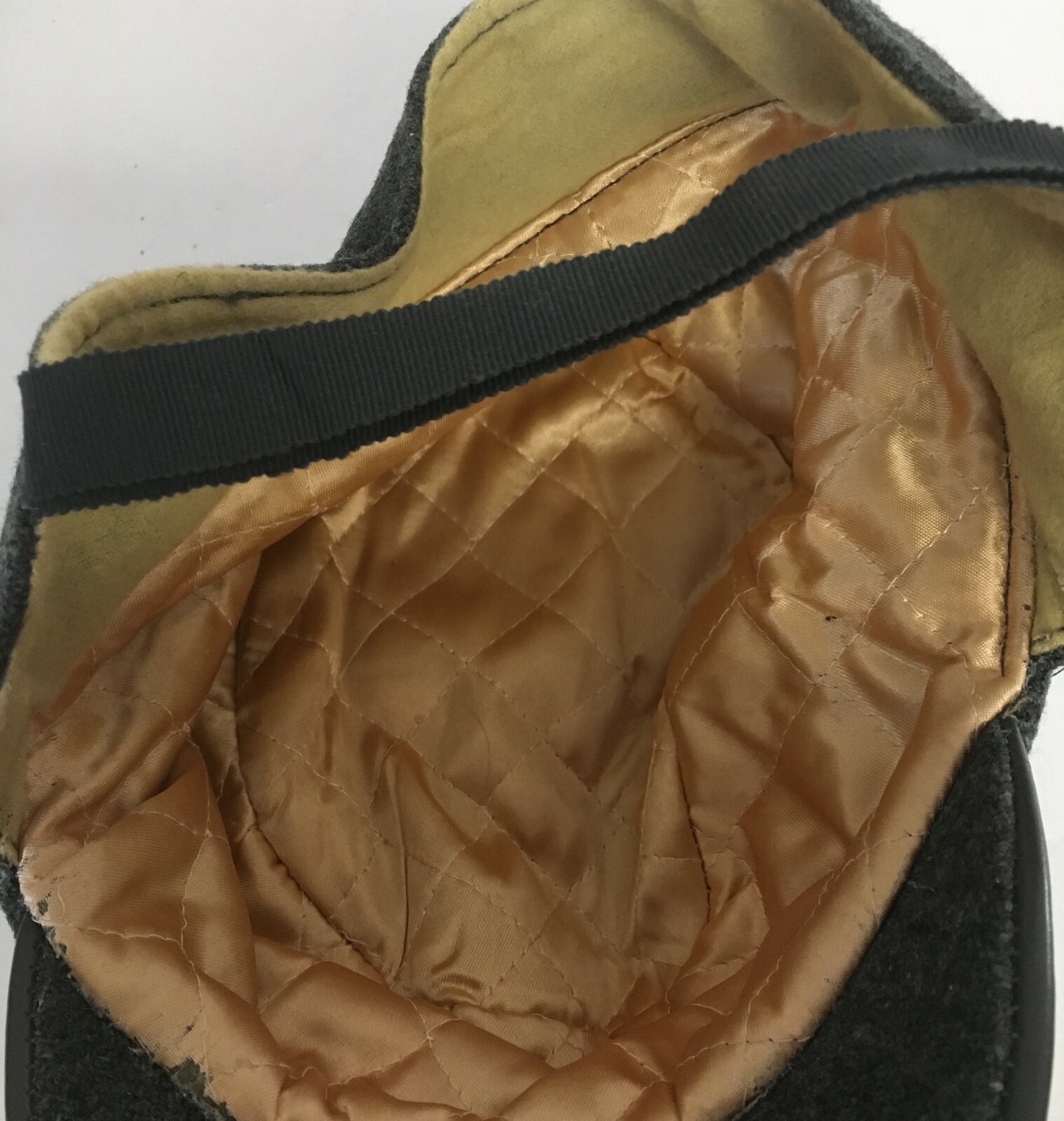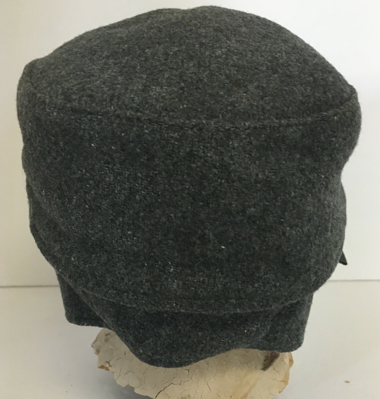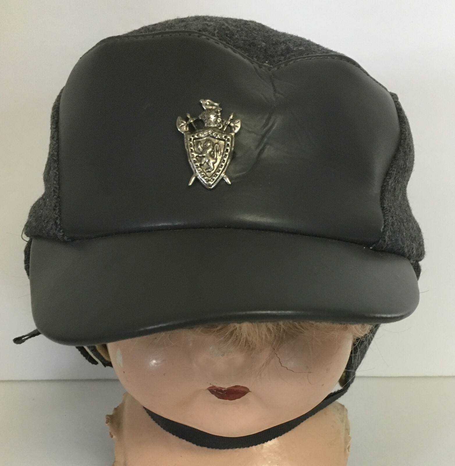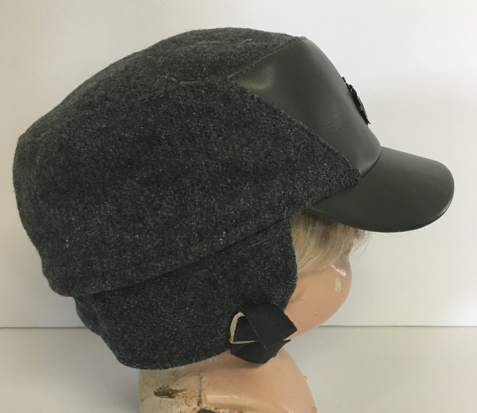 Vintage Boys Toddlers Gray Wool Faux Leather Cap Hat With Emblem Strap