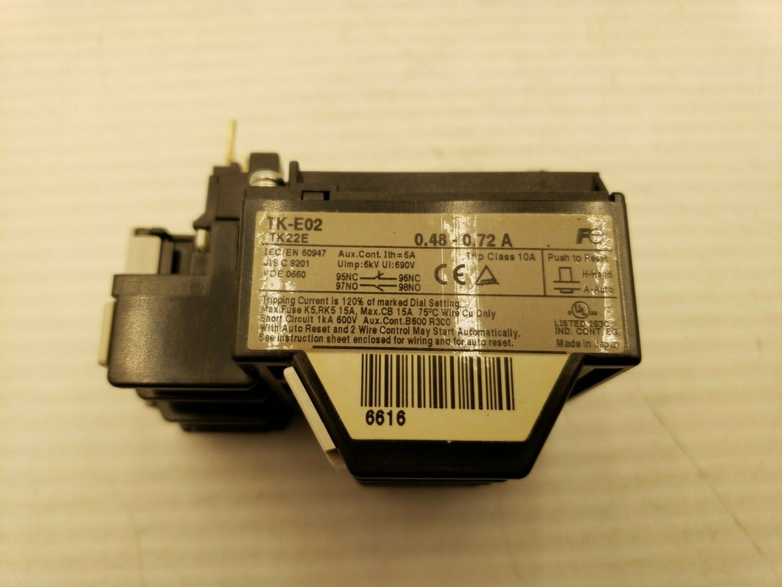 как выглядит FUJI TK-E02-72 THERMAL OVERLOAD RELAY 0.48-0.72 AMP TK22E TRIP CLASS 10A NIB фото