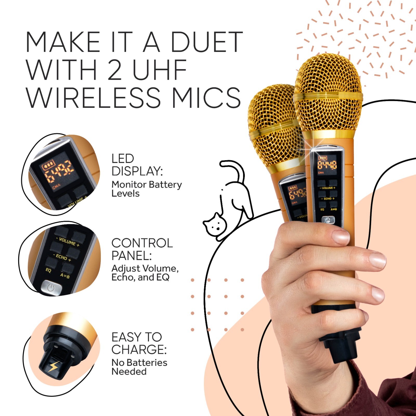 как выглядит MASINGO Kitty Cat Karaoke Machine for Kids, Bluetooth Speakers, 2 Wireless Mics фото