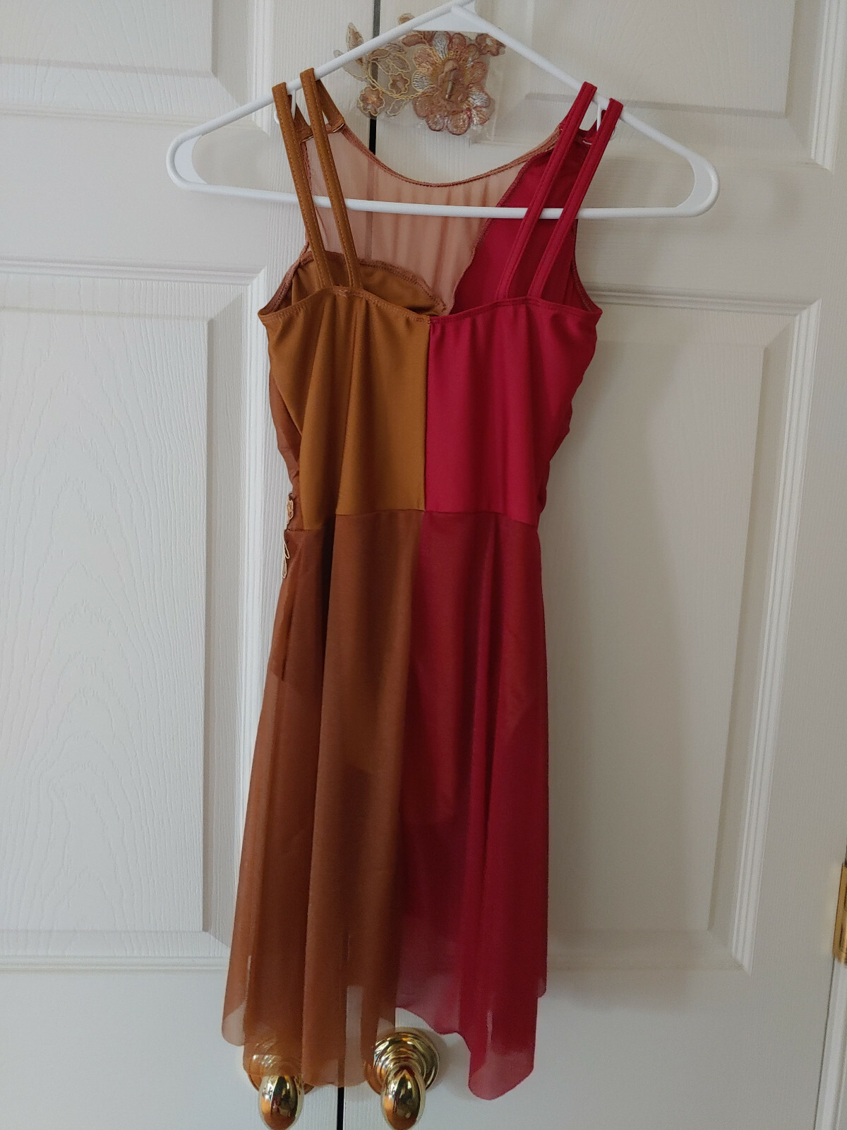 как выглядит Girl Art Stone Brown Burgundy Flower Modern Lyrical Dance Dress Costume Size LC фото