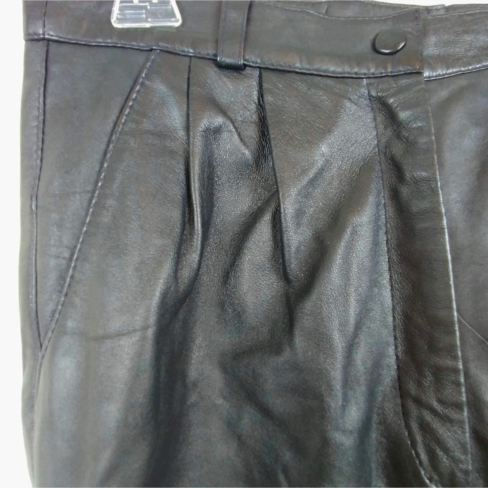 как выглядит VTG 80s-90s Black Leather Slacks 30"W Pleated Front High Waisted фото