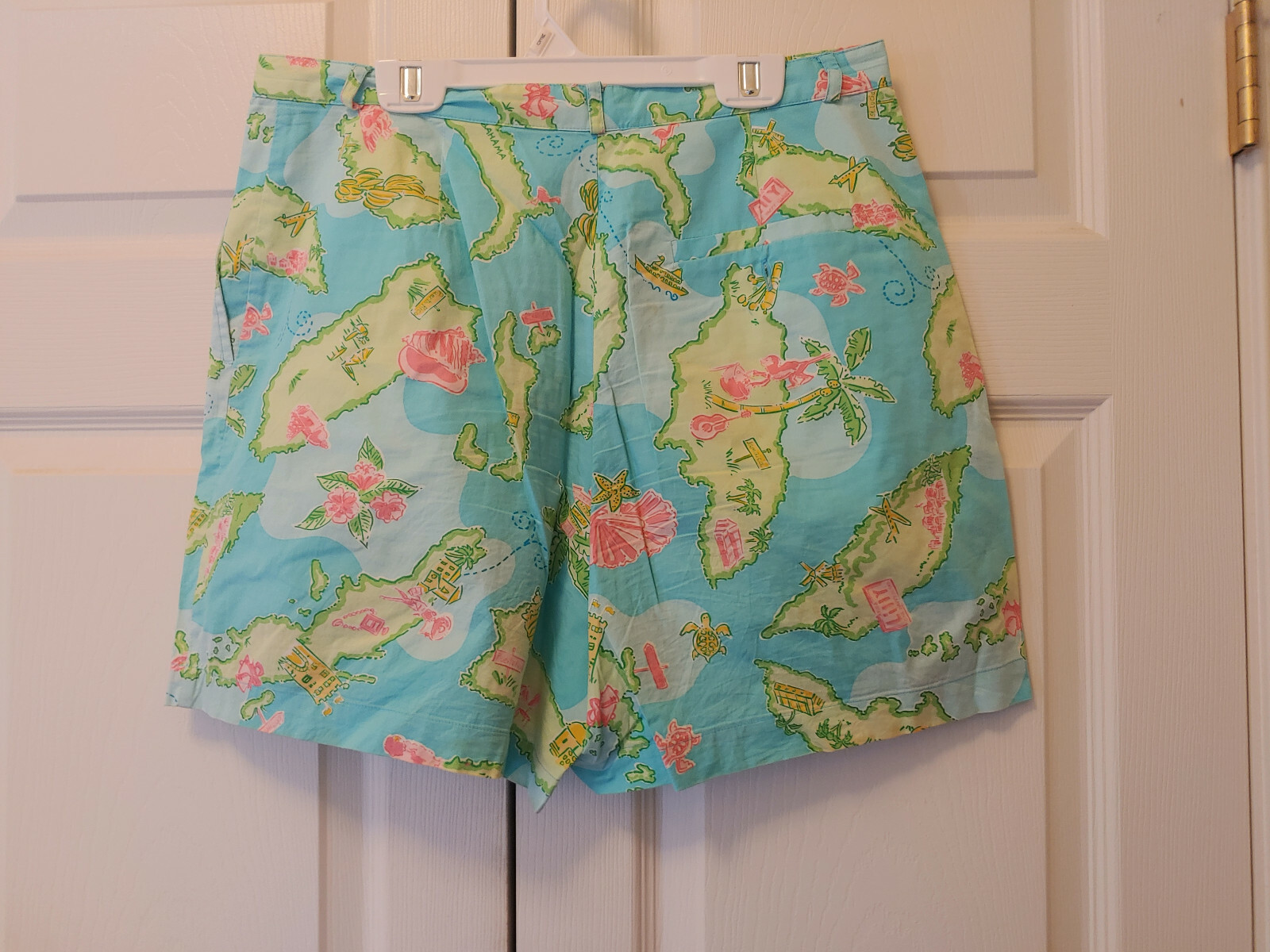 как выглядит Vtg Women Lilly Pulitzer Aruba One Happy Island Blue Bermuda Shorts Size 10 фото