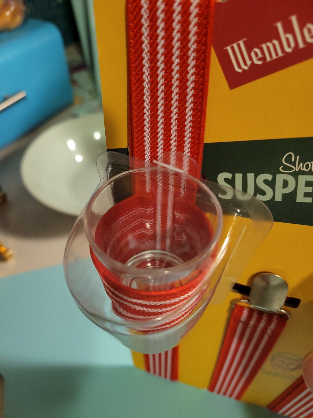 Wembley Shot Glass Suspenders, Red and White - Unique