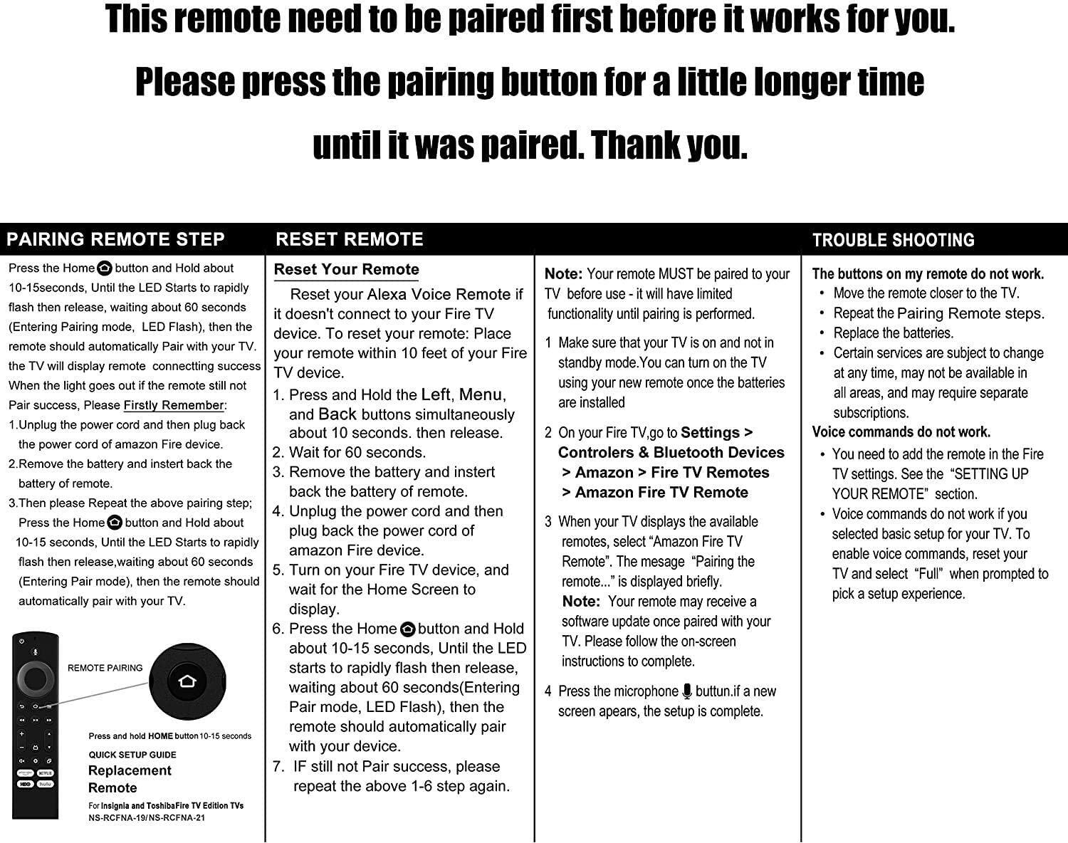 OEM Original Voice Remote for Insignia, Toshiba, Pioneer Smart TV NS-RCFNA-21