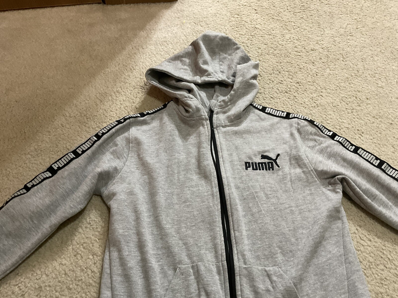 как выглядит PUMA Kids Boys Fleece Gray Hooded Zippered Sport Athletic Track Jacket M 10/12 фото