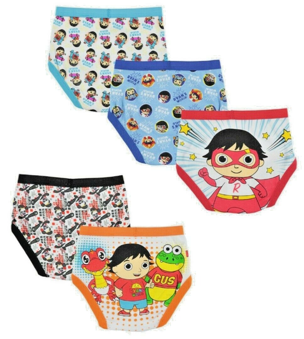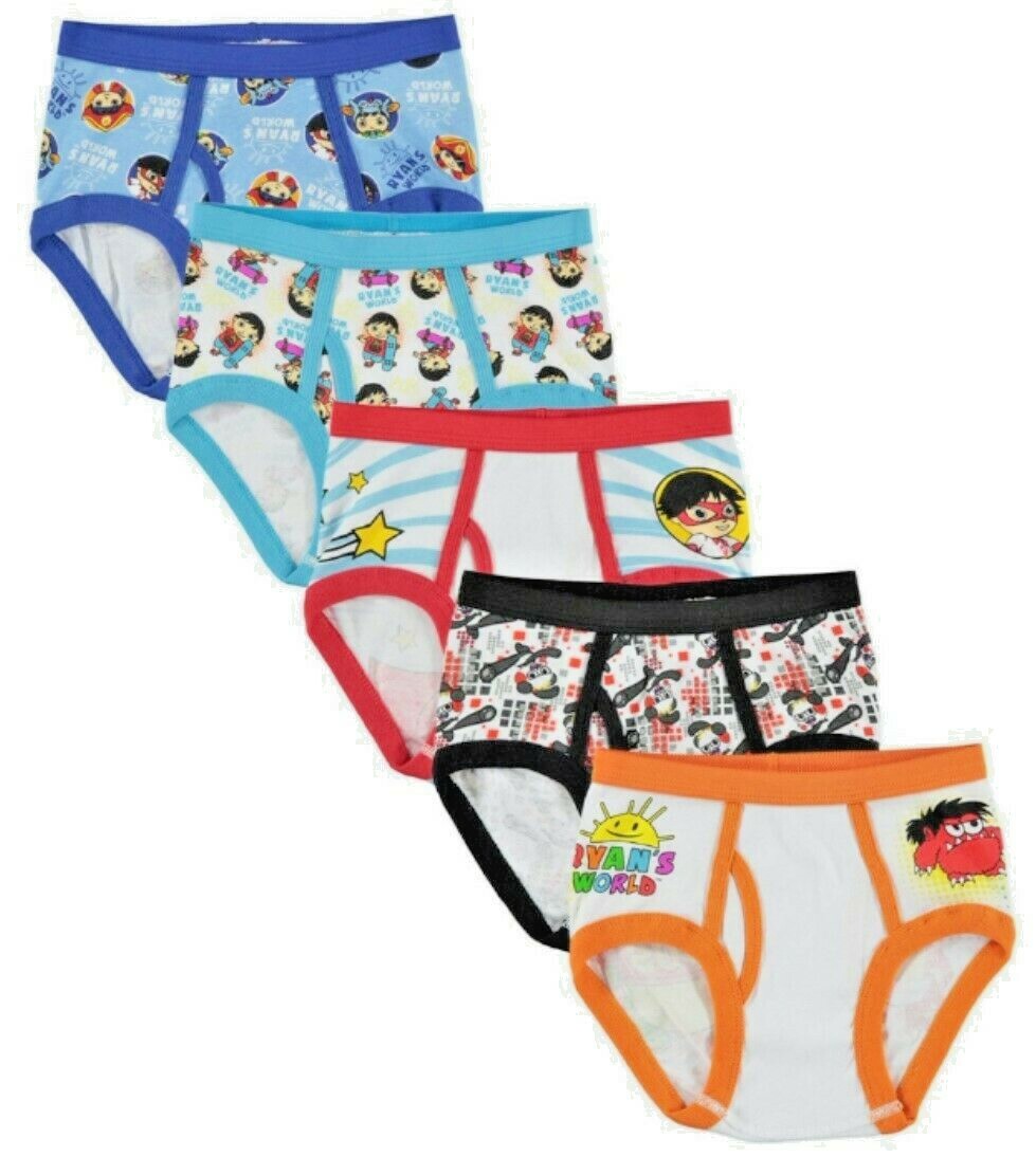 NWT Boy's Size 4 Briefs RYAN'S WORLD Underwear 5 Pack 100 Combed Cotton