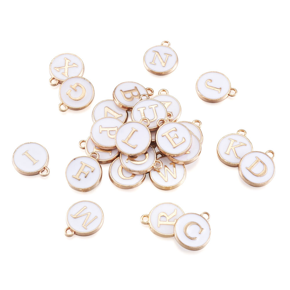 1Set Flat Round Double Sided Initial Letter A Z Alphabet Enamel Charms 14x12x2mm