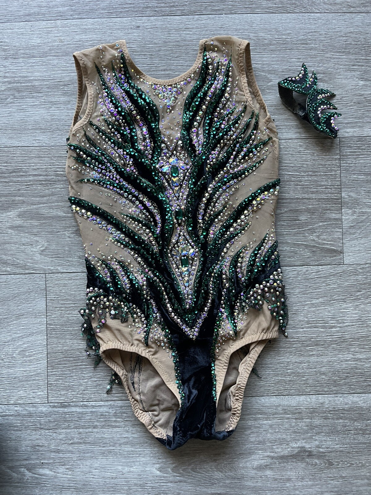 Beautiful competition Swarovski Rhythmic Gymnastics Leotard 8-10 yo 135 W/crown