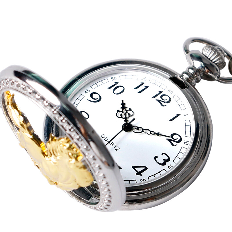 Analog Exquisite Running Golden Horse Quartz Pocket Watch Silver Necklace Chain
