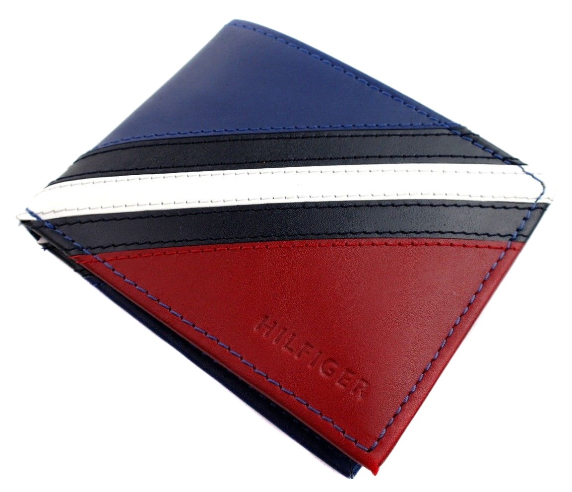 Tommy Hilfiger Men's Leather Wallet Passcase Billfold Red Navy 31TL22X051