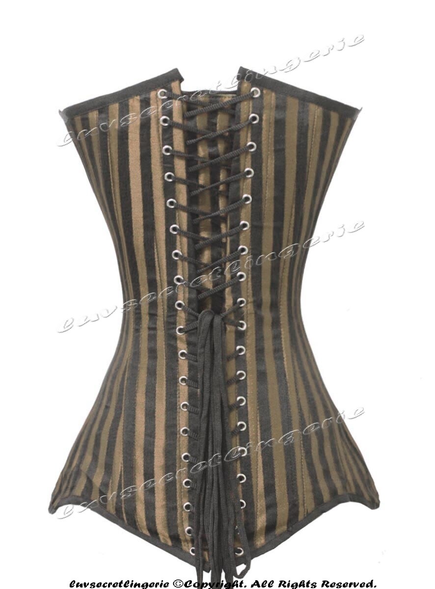 26 Double Steel Boned Waist Training Brocade Stripe Long Overbust Shaper Corset