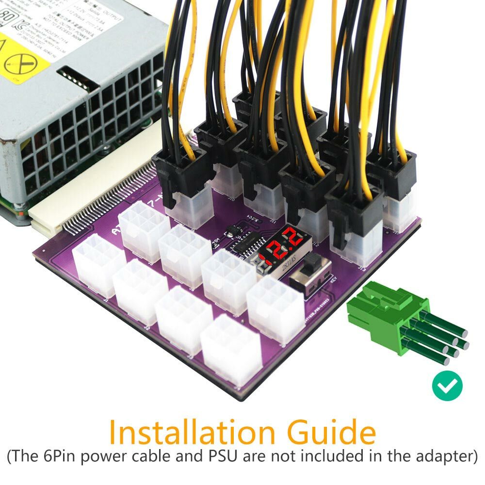 ATX 17x 6Pin Power Supply Breakout Board Adapter Converter 12V for Ethereum BTC