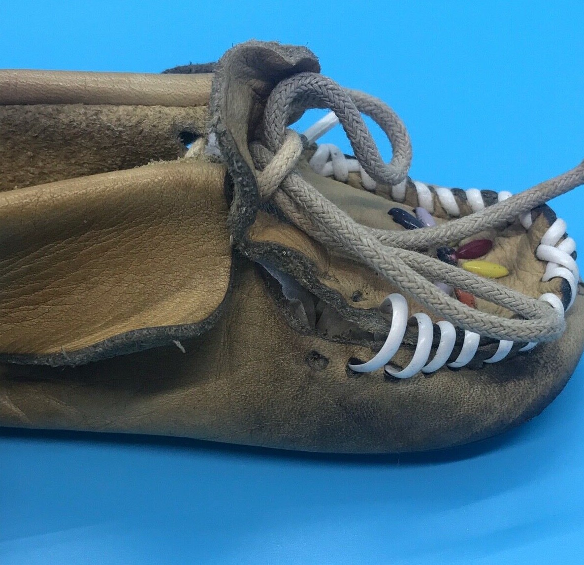 Vintage Children s Shoes Tan Moccasins Soft Leather. Beading.
