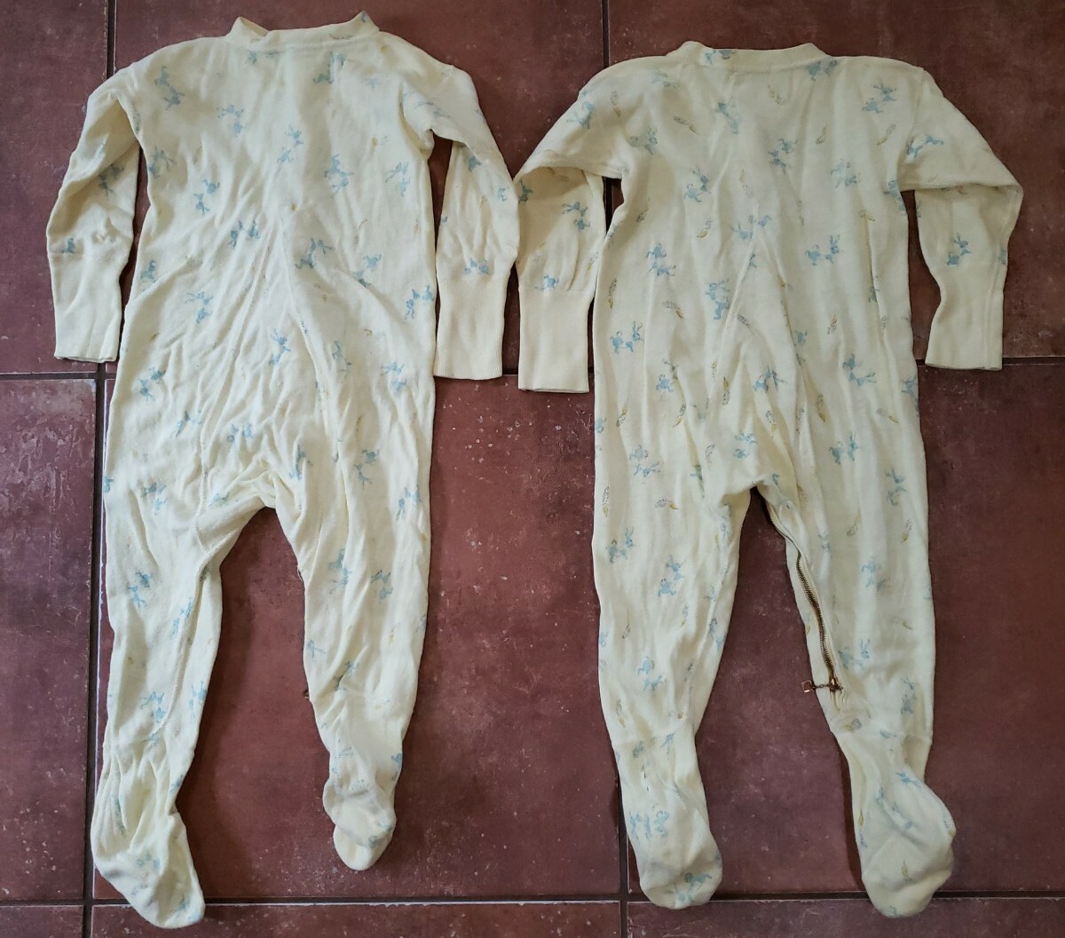 как выглядит 2 Nitey Nite Sleeper Pajamas PJs Size L Yellow Perryized Footed Zipper VINTAGE фото