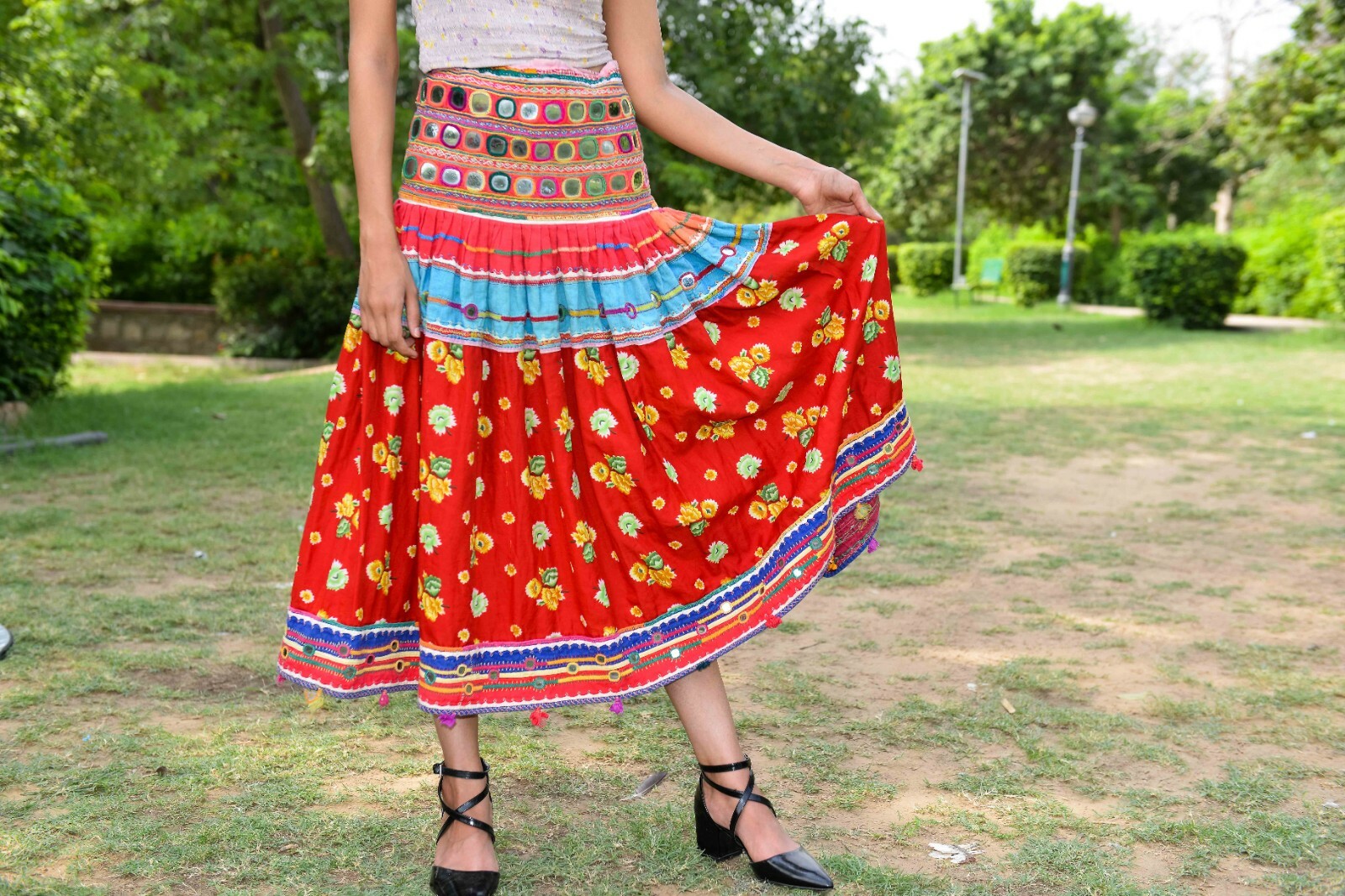 Rabari Belly Dancing Mirror Work Skirt Banjara Dance Skirt Gypsy Bohemian Tribal