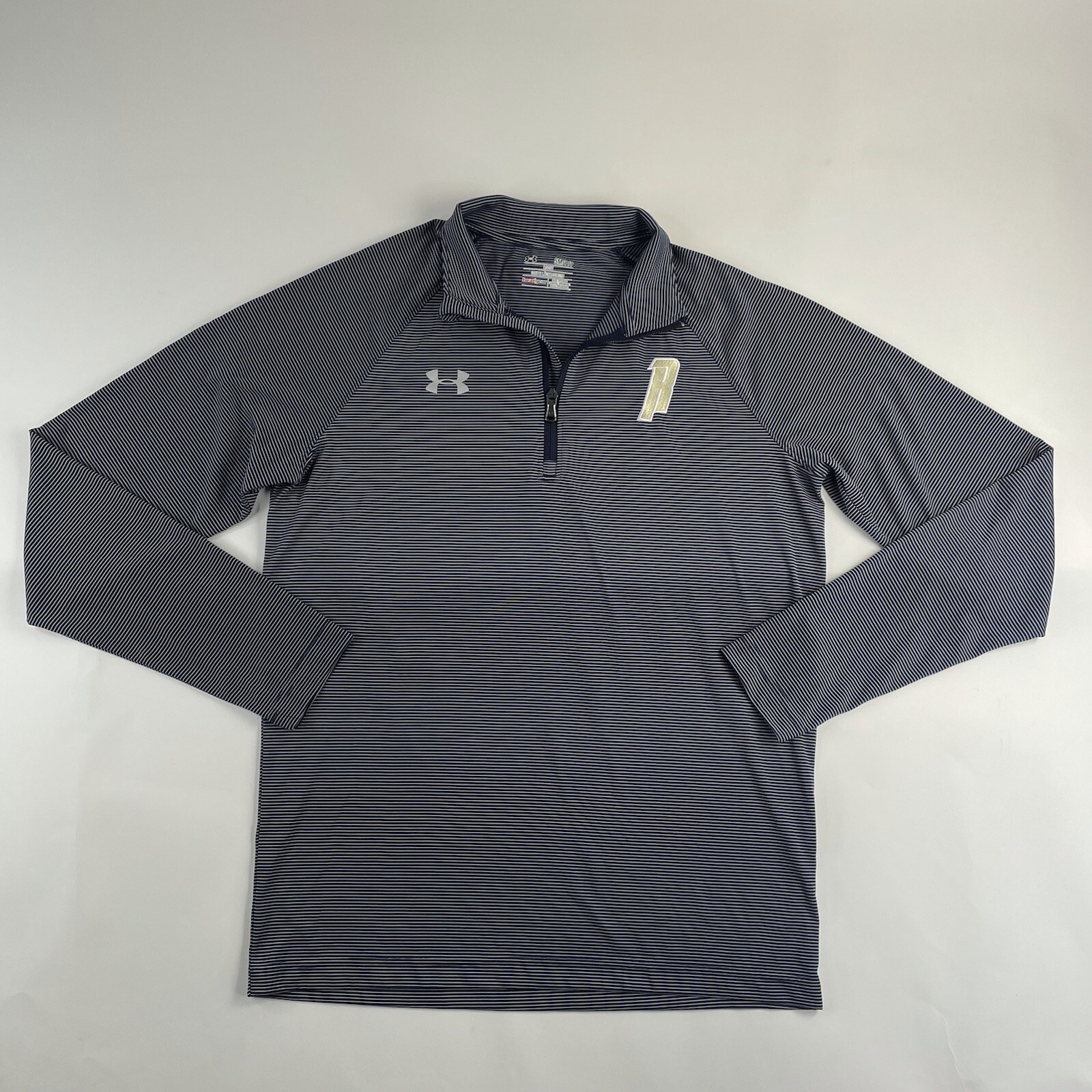 как выглядит Under Armour Jacket Small Grey Blue Mens Loose Heatgear 1/4 Zip Long Sleeve Used фото