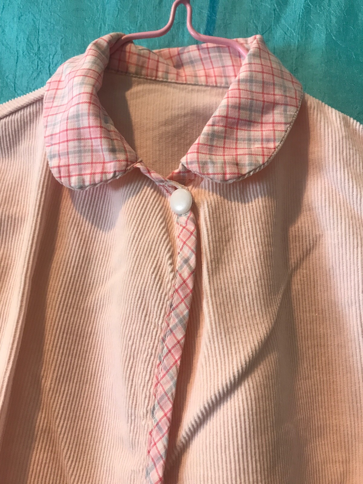 как выглядит Vintage 1960s Childrens Girls Pink Corduroy Robe with Plaid Trim. Size 3, 4 фото