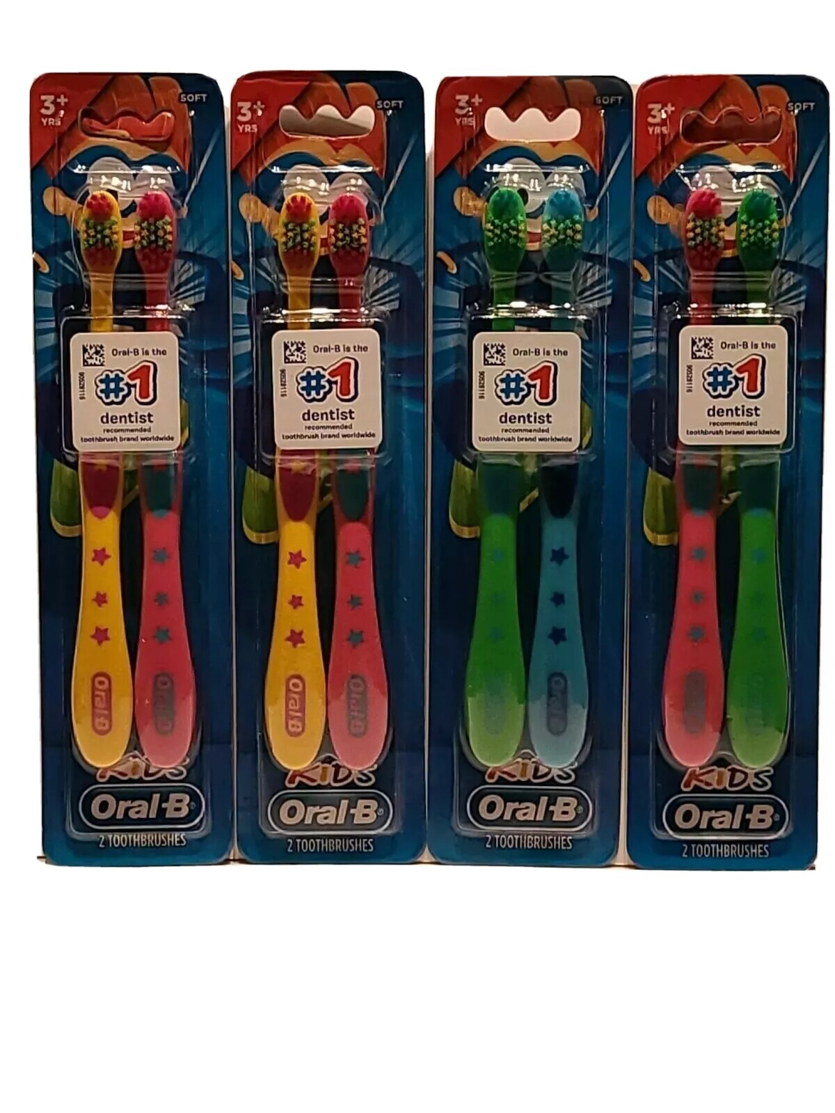 Lot Of 4 Oral B Kids Multi Colored Control Grip Power Tip Soft 2 Ct Toothbrush.