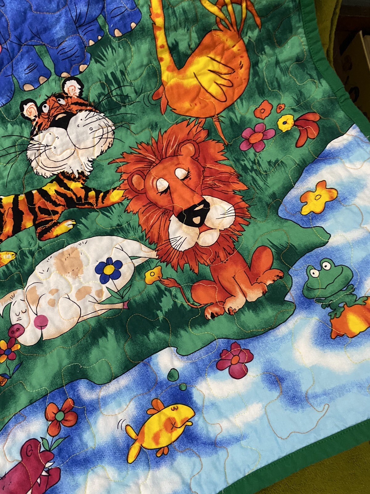 Whimsical noahs ark baby quilt Blanket With Bright Colors